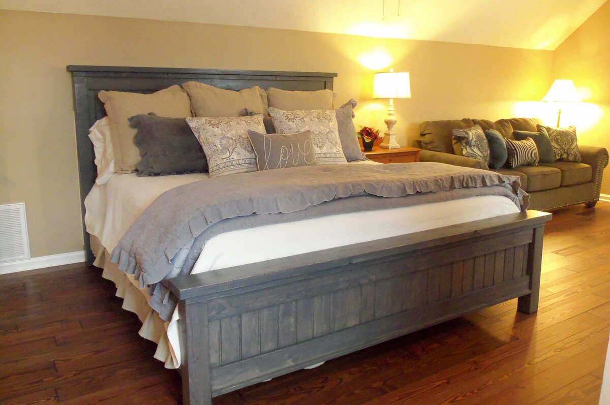 Los huéspedes disfrutan de una amplia suite de estilo artesanal con baño privado completo (ducha doble + bañera), minicocina, sofá, llegada autónoma las 24 horas a través de una cerradura combinada, porche envolvente y entrada privada. Convenientemente situado a 3 millas del centro de Atenas y de todos los maravillosos lugares nocturnos y restaurantes, las actividades del Centro de Convenciones Classic City y todos los acontecimientos en la Universidad de Georgia. A 1 milla de la tienda de comestibles más cercana. No se permite fumar ni traer mascotas o niños menores de 13 años.