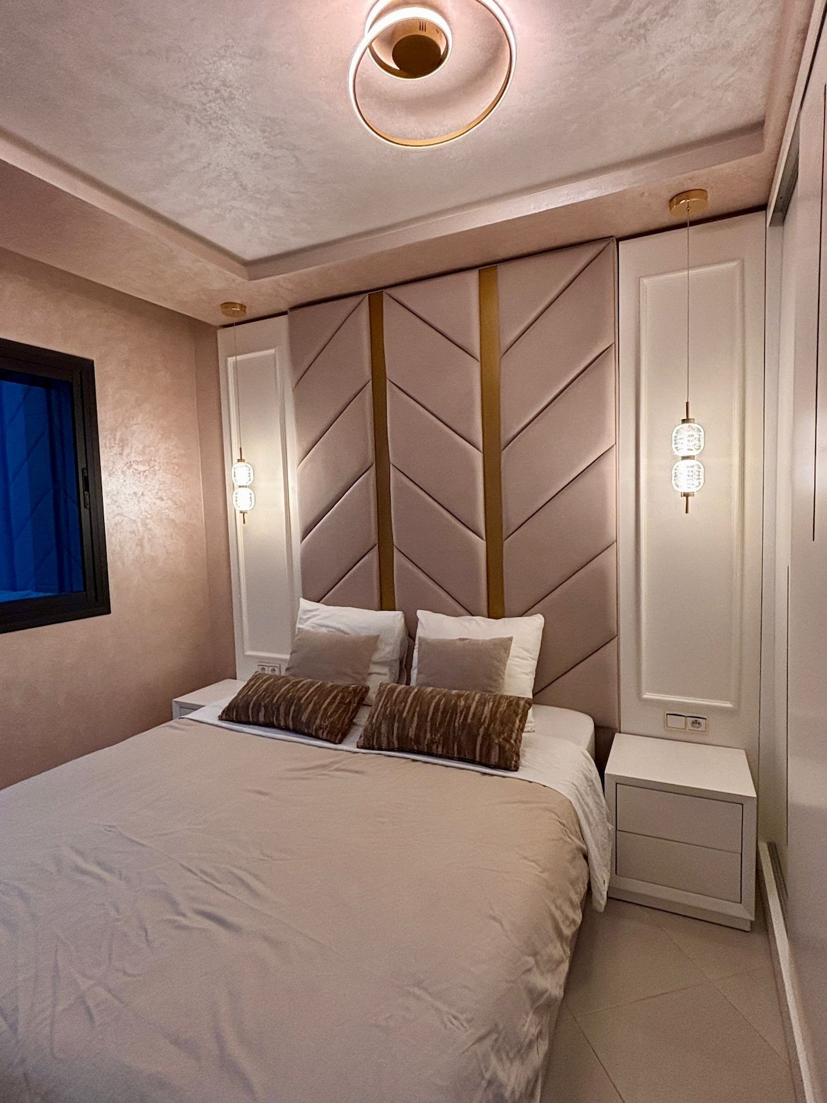 Disfruta de una estancia tranquila donde todo está a solo unos pasos, no necesitas coche. Camina hasta el aeropuerto, toma un café abajo o cena en los mejores lugares de Tetouan, como McDonald's, Little Mama, Picks y La Dorada. El apartamento es tranquilo, sin ruido de la calle ni obras, perfecto para dormir bien. Estás a solo 10 minutos de Marina Smir Beach y de la antigua Medina, a 15 minutos de Ceuta, a 45 minutos de Tánger y a 1 hora de Chefchaouen. Cocina totalmente equipada, TV en todas las habitaciones, aparcamiento privado y cafeterías en la planta baja.