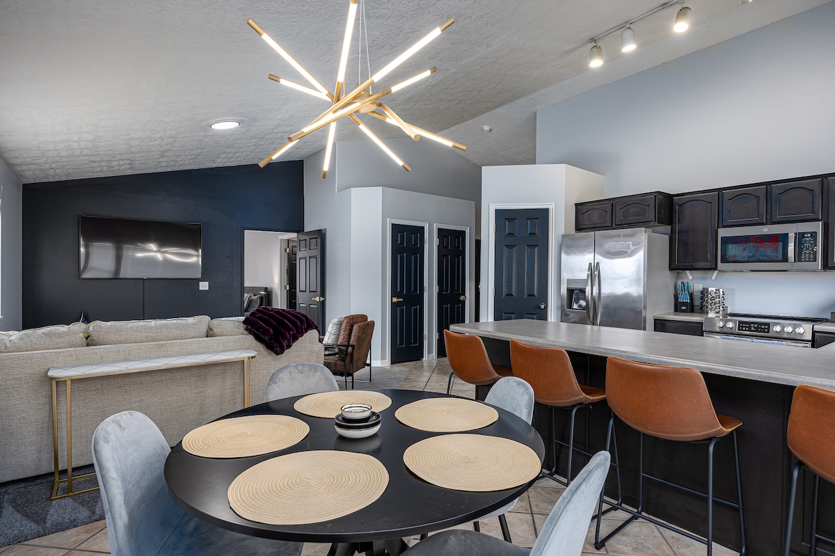 Bienvenido a nuestra encantadora residencia Hobb Mill, que cuenta con un amplio diseño de planta abierta con una cocina de última generación, perfecta para organizar grandes eventos familiares. Cuenta con 7 dormitorios y 3,5 baños. Las comodidades incluyen cocina de última generación, amplio comedor, espacio de oficina, 2 salas de estar, una sala de cine/juegos combinada y televisores inteligentes. Estamos cerca de estaciones de esquí, restaurantes y embalses para actividades de verano. Relájate con vino en nuestro patio, sumergiéndote en el jacuzzi bajo un sereno aire de montaña.