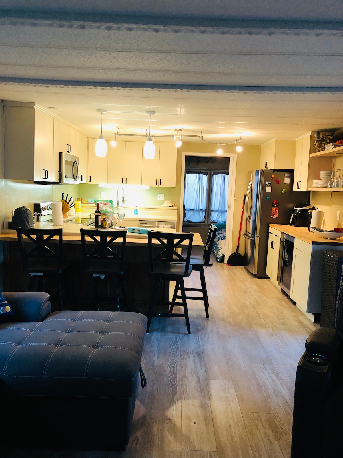Descansa y relájate en este espacio tranquilo y elegante. Recientemente remodelado con decoración de ambiente playero en todas partes. Encimeras de granito e isla en la cocina con taburetes para 6 personas. Estación de café Keurig con iluminación automática bajo el mostrador. Amplio fregadero de cocina con escurridor desmontable, tabla de cortar y cubeta para lavar verduras/frutas. Lavadora y secadora apiladas a plena capacidad. Dispensador de jabón en la ducha. Toallitas de maquillaje proporcionadas. Estación de carga y wifi. Tomas de corriente en todas las mesitas de noche.