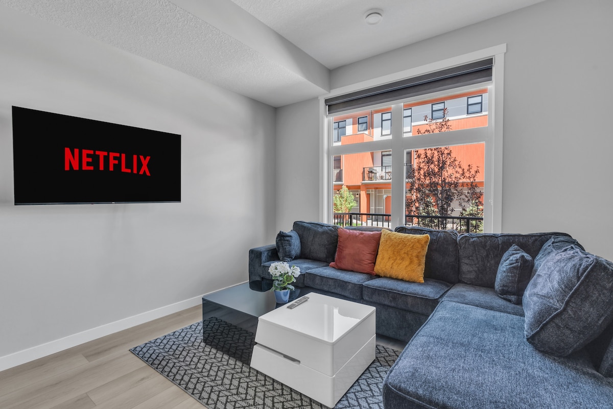 Relájate en esta tranquila y elegante suite en el sótano de 1 dormitorio y 1 baño en Seton, SE Calgary. Diseñado cuidadosamente para la comodidad y la privacidad, es el refugio perfecto para viajes de trabajo o una escapada relajante. ¡También tenemos lo que necesitas para los más pequeños! Viene con wifi gratuito, cama tamaño queen, TV de 50 pulgadas, Amazon Prime y Disney +, cocina equipada y aparcamiento gratuito en la calle. Convenientemente ubicado cerca de servicios, restaurantes, cine, South Health Campus y mucho más. Fácil acceso a la autopista 2, al centro de la ciudad, a las montañas y a los senderos.