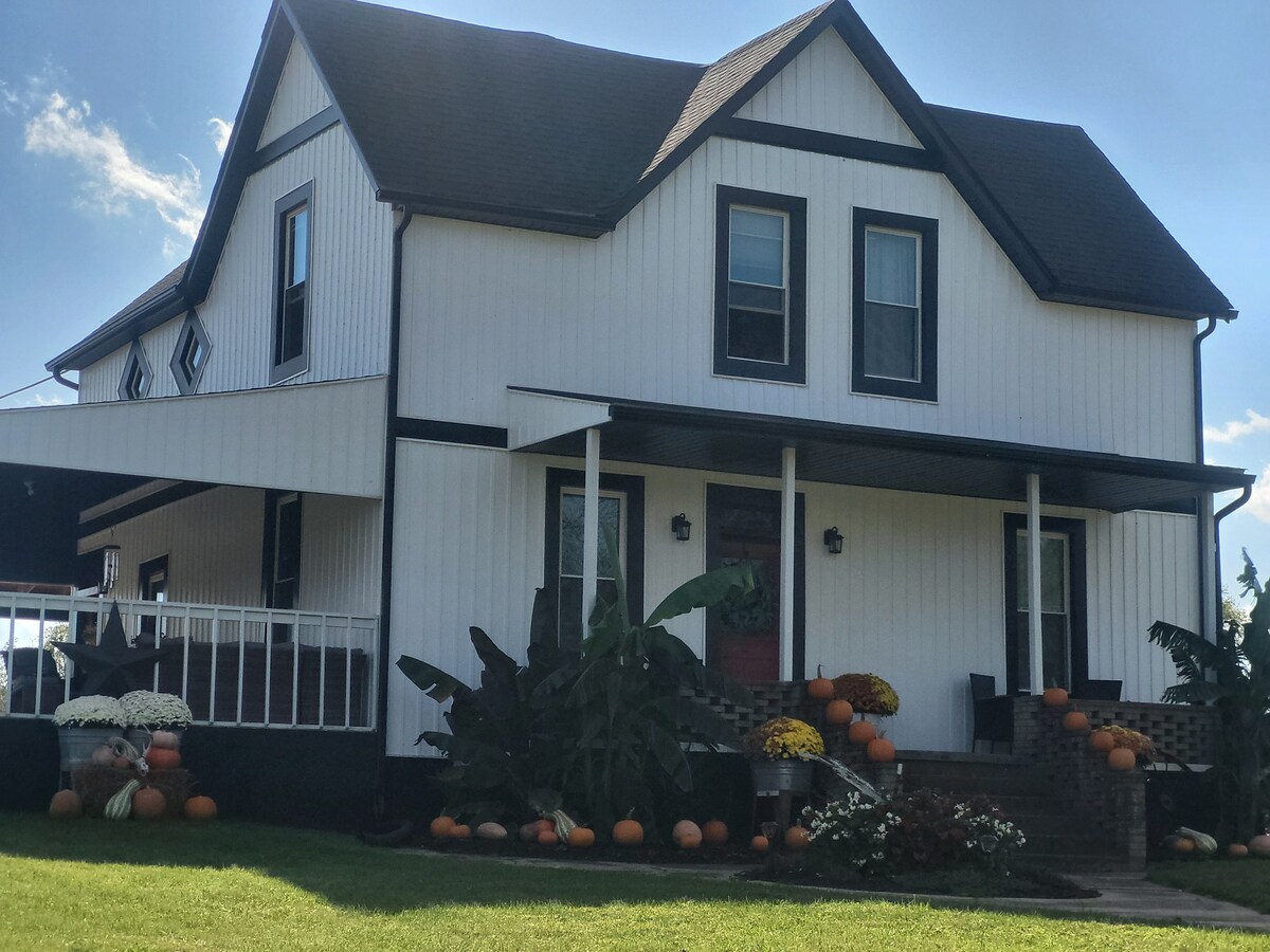 ¡Te damos la bienvenida a Mayberry West Farms! Es un honor para nosotros ser vuestros anfitriones y compartir nuestra granja con vosotros... Bisonte alimentado con hierba al🦬 100 % 🐴 Clydesdales 🫏 Burro 🐓Pollos ¡El barracón se encuentra en medio de todo! Más ofertas: ➡️ Patio con chimenea, parrilla y bañera de hidromasaje ➡️ Cafetera espresso ➡️ 1 cama tamaño king, 1 cama completa, 2 camas individuales Cocina ➡️ completa con ollas, sartenes, condimentos y aceite de cocina. ➡️ 3 estanques para pescar ➡️ Rutas de senderismo Alquiler de carritos de➡️ golf ➡️ Fogatas Juegos ➡️ recreativos