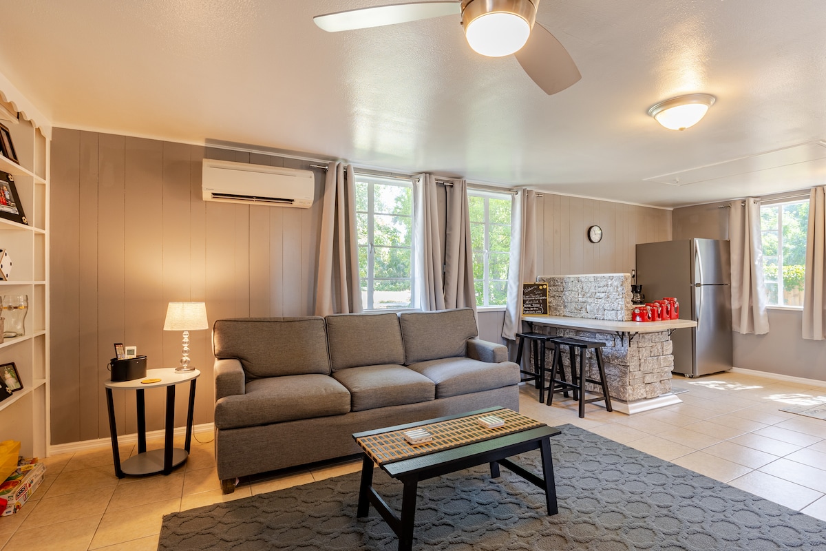 Bienvenido a tu santuario tranquilo, espacioso y privado. Disfruta de todos los electrodomésticos nuevos en la cocina de tamaño completo, un televisor de pantalla plana de 50 pulgadas y una zona exterior sombreada rodeada de vegetación. Se encuentra a solo minutos del Aeropuerto Internacional de Orlando Sanford, de los restaurantes y tiendas del centro histórico de Sanford, del pintoresco paseo marítimo del lago Monroe y tiene una ubicación céntrica entre las playas de Florida y los parques de atracciones. **El espacio se limpia con limpiadores aprobados por la EPA, incluidas las superficies de alto contacto**