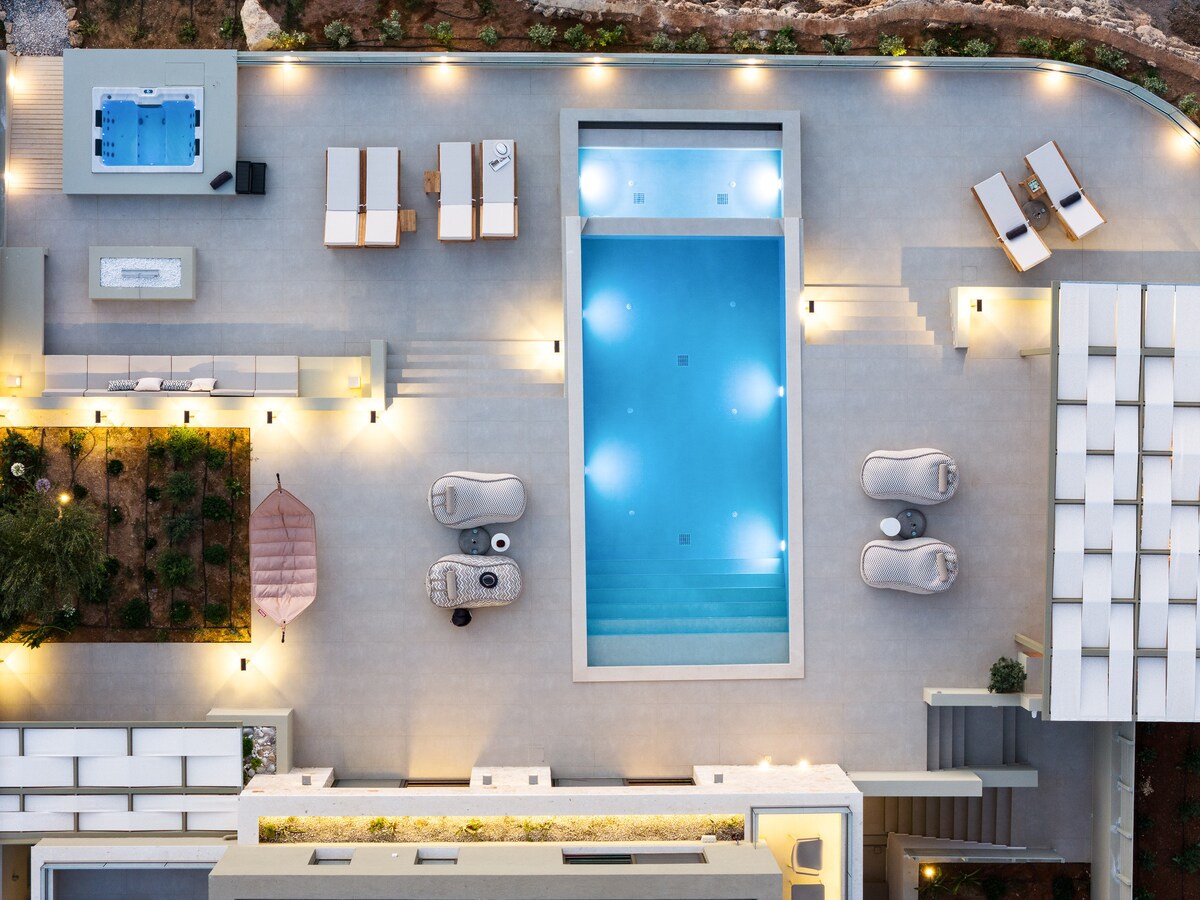 Villa DioNysos Boutique (por AmaZeus Group) Una lujosa villa diseñada, construida y acabada con los más altos estándares, a solo 20 metros del mar. Esta propiedad subterránea adopta la arquitectura y el diseño sostenibles, en armonía con los elementos naturales de su entorno para crear un ambiente sereno de lujo moderno. Con líneas limpias inspiradas en el minimalismo, la villa refleja la luz del sol de forma espectacular y ofrece un entorno donde la naturaleza ocupa un lugar central.
