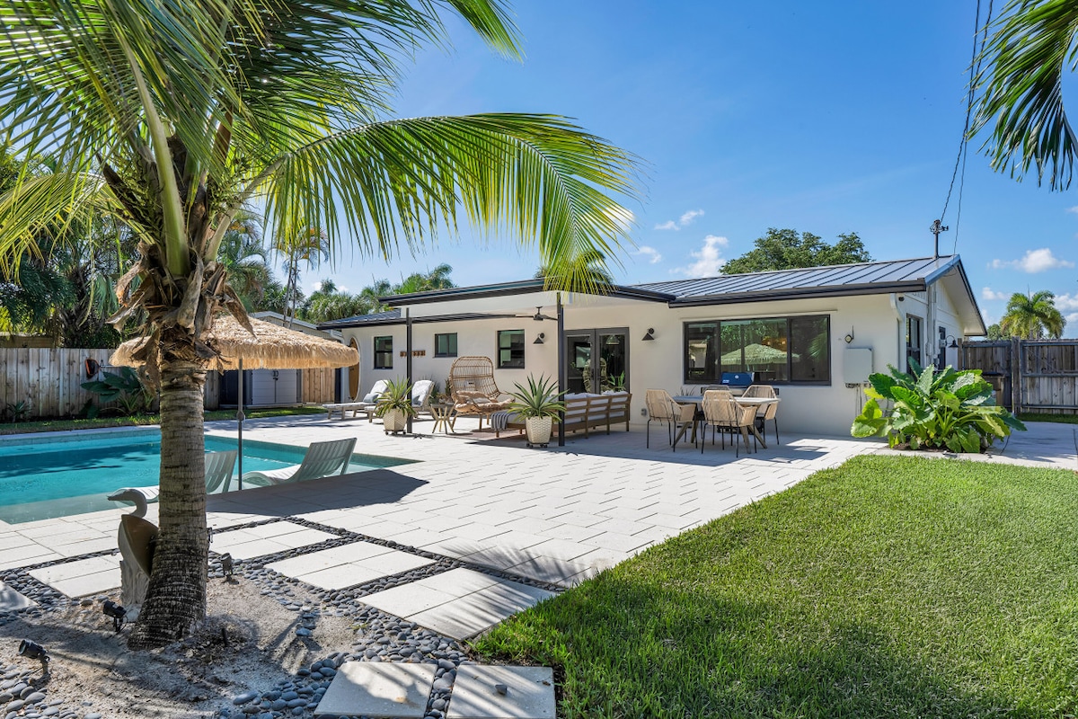 Bienvenido a tu elegante refugio boho-luxe recientemente renovado con características inteligentes para una estancia perfecta, a solo 10 minutos de Deerfield Beach. Disfruta del sol de Florida junto a tu piscina privada de agua salada, climatizada durante todo el año y rodeada de exuberantes jardines tropicales. Explora Boca Ratón, Fort Lauderdale o West Palm Beach, o quédate en la zona con boutiques de moda, acogedores cafés y restaurantes de primera categoría a un paso de distancia. Tu escapada perfecta al sur de Florida empieza aquí.