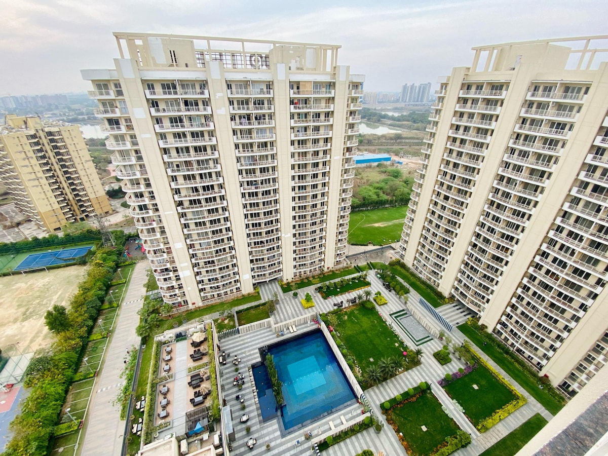 Alójate en un acogedor y bien diseñado apartamento de 1 dormitorio y 1 baño en el piso 11 de Satya The Hive, Sector 102, Dwarka Expressway. Relájate en tu amplio balcón privado con vistas panorámicas al atardecer después de pasar un día en la ciudad. Ideal para estancias en el aeropuerto, viajes de negocios y estancias largas, este alojamiento de 67 metros cuadrados ofrece una cocina totalmente equipada, wifi, espacio de trabajo, Smart TV y tiendas, cafeterías y restaurantes en el edificio. Delhi y Gurugram están a pocos minutos.