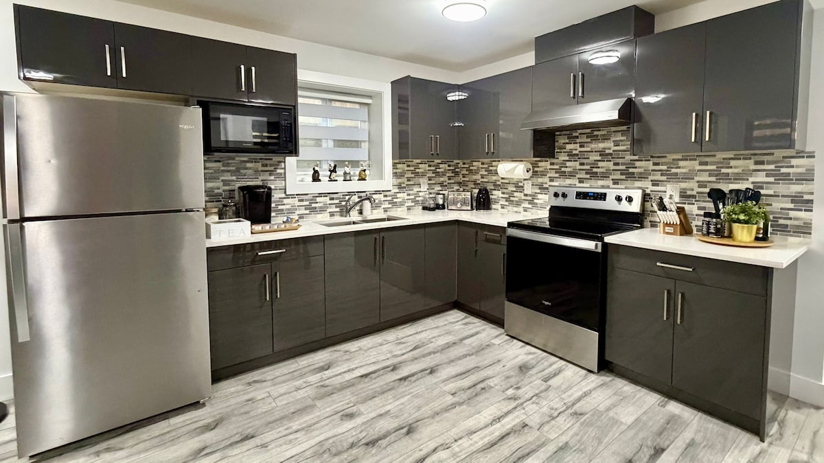 Nuestra suite en el sótano privado de 2 dormitorios de nueva construcción, espaciosa y elegante, ofrece una mezcla perfecta de lujo y comodidad. Con su propia entrada privada, disfrutarás de una privacidad y comodidad incomparables. Disfruta de wifi de alta velocidad (1 GB) y aparcamiento gratuito en el hotel para 2 coches/1 autocaravana. Aprovecha la cocina totalmente equipada y el jardín trasero vallado Ubicada en el corazón de Lower Mainland, esta suite está a pocos minutos de la vibrante energía de la ciudad, pero escondida en una calle tranquila.