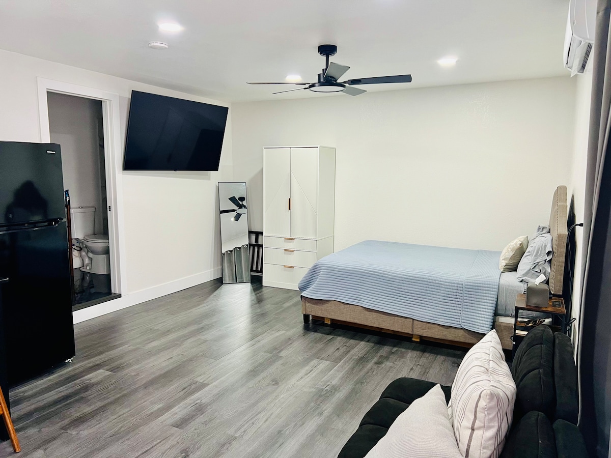 Stay in our Cozy studio with a new pillow top mattress with comforter will give you a good night rest and comfortable sofa , high speed internet with wifi in unit is ready for you to use and our Smart TV is connected with an Amazon Fire Stick. Full size refrigerator is included and very good size kitchenette. Unit has its own water heater and Climate Control System (AC/HEAT) conveniently located within 2 hours of San Francisco, Yosemite & Sacramento.
