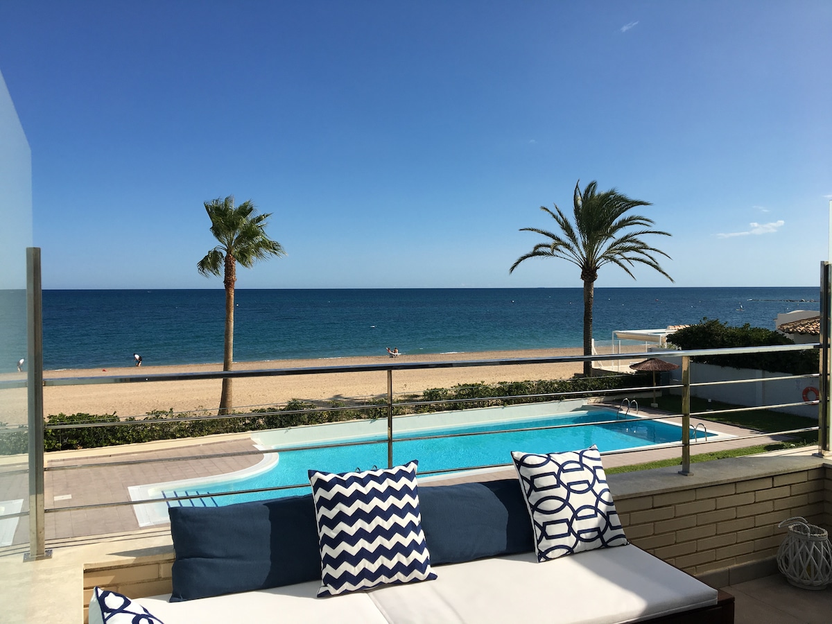 Despierta con el mar a tus pies! Dúplex de lujo en primera línea, literalmente sobre la arena, con vistas frontales al mar desde toda la vivienda y su amplia terraza. Ideal para 4 personas, cuenta con 2 dormitorios dobles, 2 baños, cocina totalmente equipada, tendedero con lavadora y aire acondicionado en toda la casa. Ubicado en urbanización de reciente construcción con acceso directo a la playa, gran piscina y pista de pádel. ✔Primera línea ✔Vistas al mar ✔Piscina ✔Acceso directo a la playa