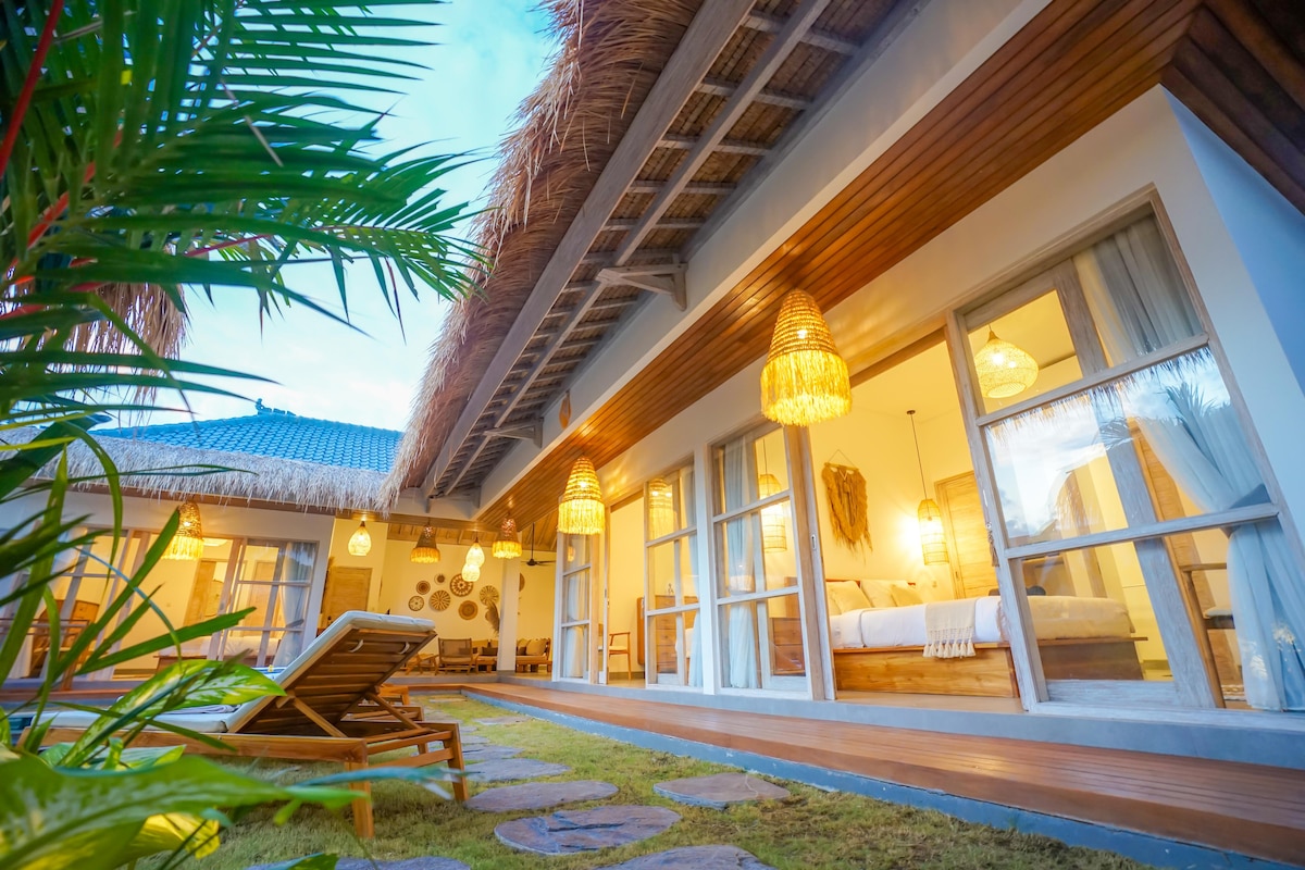 A 9 minutos a pie de la playa. Te damos la bienvenida a Mediterra Luna. Nuestra villa de lujo de 2 dormitorios de temática mediterránea de nueva construcción es ideal para familias, grupos pequeños y parejas que buscan una escapada elegante y moderna en Bali. A pocos pasos de la playa, tiendas y restaurantes, y diseñada pensando en tu comodidad y confort. Disfruta del espacioso y moderno interior de planta abierta y de una piscina familiar y una zona de terraza para relajarte en tu próxima escapada a Bali.