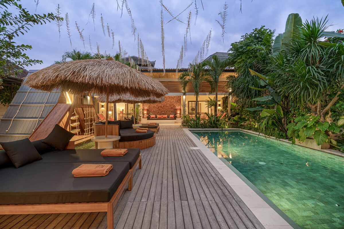 Una vida de lujo ubicada en el vibrante corazón de Kuta y Seminyak Collar de flores✔️ gratis Masaje de pies✔️ gratuito de 5 minutos Bebida de bienvenida✔️ gratuita Toalla ✔️fría de bienvenida gratuita Limpieza ✔️diaria de la villa Seguridad las✔️ 24 horas Entrada ✔️ gratuita al Atlas Beach Club + descuentos Nuestras impresionantes villas de 1 dormitorio están diseñadas para parejas, familias, viajeros solitarios o recién casados que buscan una escapada de lujo exclusiva. Disfruta de tu propia piscina privada de mármol, ducha al aire libre en la piscina de mármol, sin olvidar la glamorosa cama de día junto a la piscina.