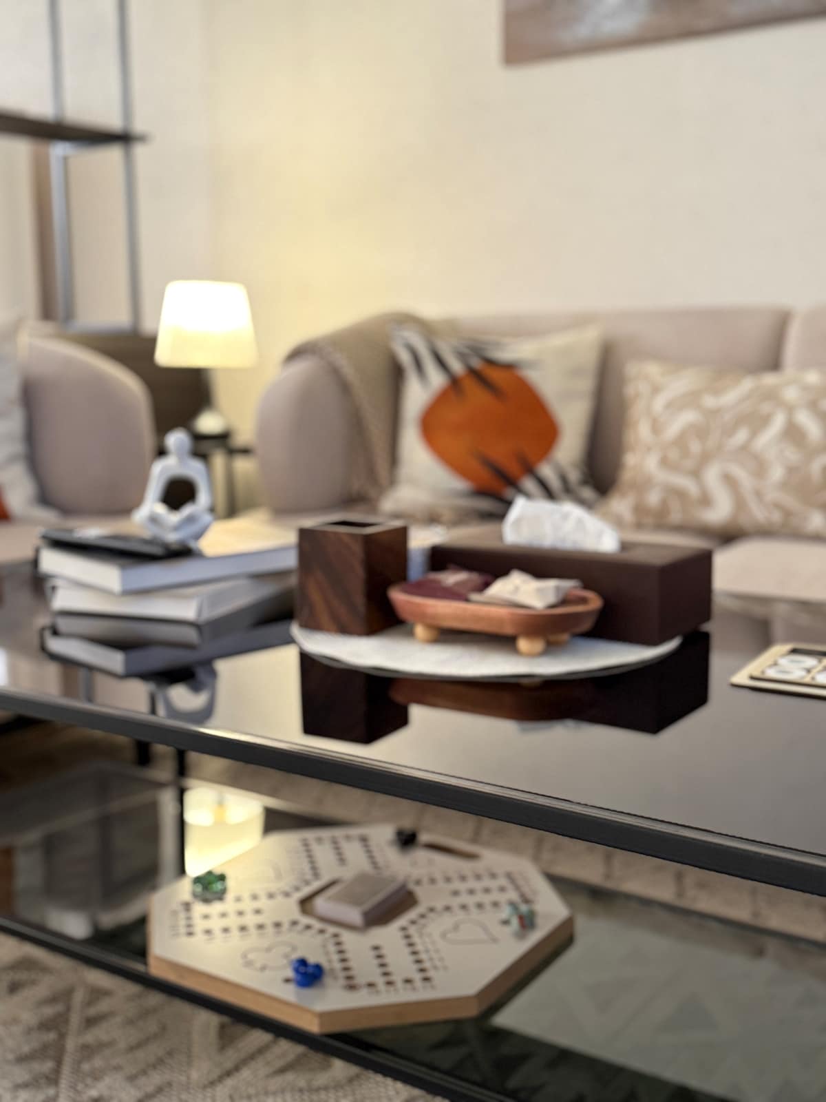 Bienvenido a nuestro impresionante apartamento Black Rattan en el corazón de Hitting. ¿Estás aquí por negocios o placer? Nuestra ubicación es perfecta para acceder fácilmente a las principales atracciones de Riad: Bulevar de Riad a 9 minutos KAFD a 15 minutos. Parque Riad a 18 minutos. Puerta de Diriyah a 10 min Reserva con nosotros y vive una experiencia real como nunca antes. El espacio: Consta de una amplia sala de estar con un dormitorio principal y luces naturales de las ventanas. Otros aspectos destacables: Por favor, respeta a los vecinos y ten en cuenta el ruido. No se permite fumar