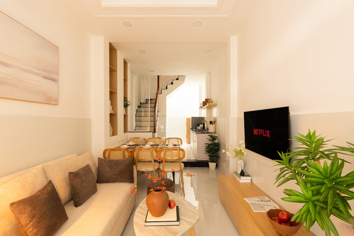 We aim to provide our guests with a home away from home. Our 4BR 3 Bath townhouse is at the end of a quiet tranquil alley, close enough to the city center but without the hustle. Our house is designed to recharge our guests during their stay, with cosy comfortable living spaces, overlooking a beautiful zen garden, a perfect environment to indulge in their morning coffee. 5 mins from Ben Thanh and Bui Vien, our townhouse is the perfect location to experience all of the wonders of Saigon.