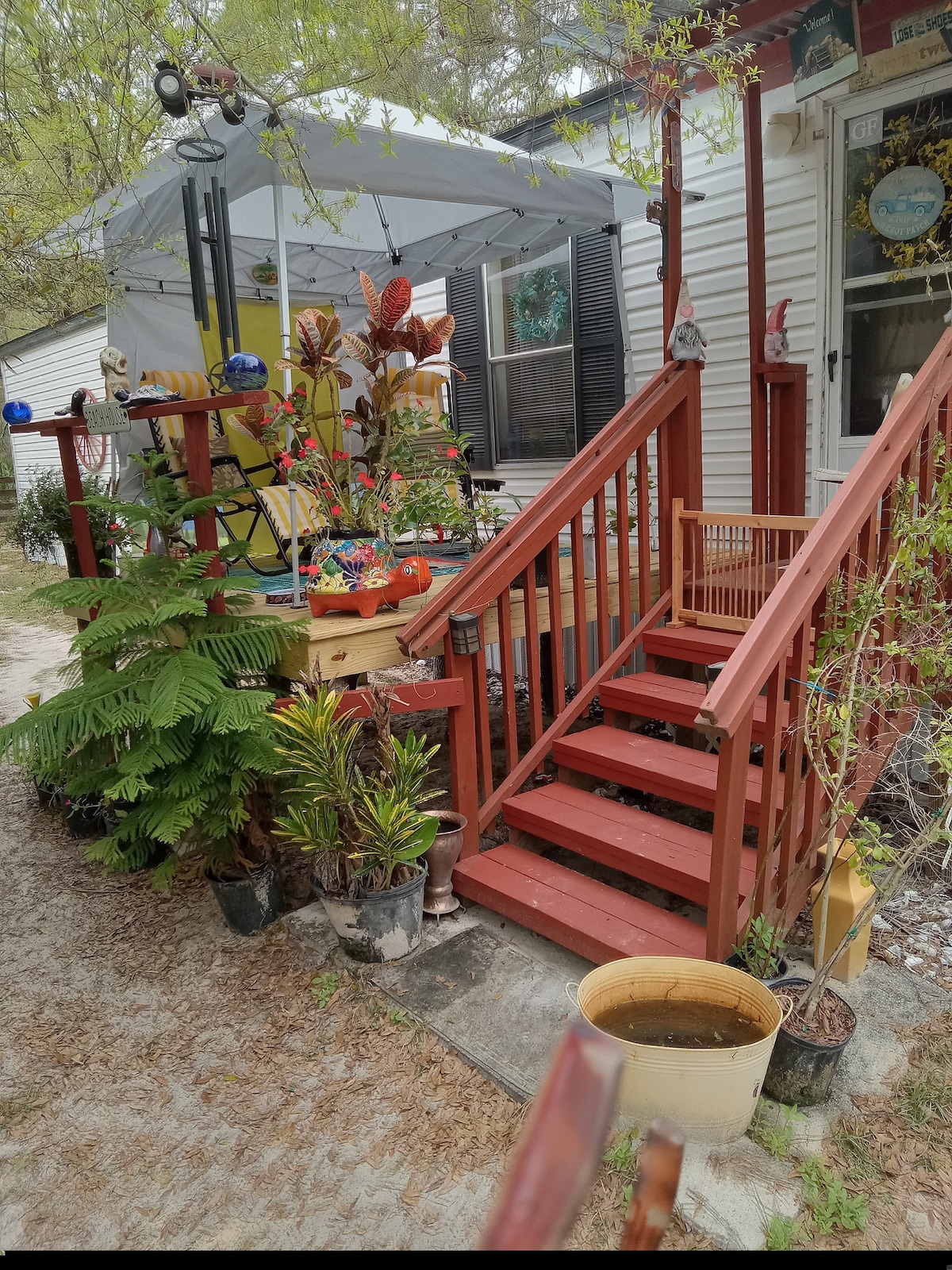 ¡Bienvenido a nuestra pequeña casa de 415 pies cuadrados! Nuestra pequeña casa cuenta con una cama tamaño queen con sofá cama, cocina completa, baño y un gran porche delantero. En la propiedad hay una piscina de 9 pies de profundidad, un pub (con mesas de billar/juegos, tocadiscos que ofrece cerveza/vino y comida), una lavandería y una casa de baños. Ofrecemos mucho aparcamiento para vehículos, barcos y remolques si es necesario. A nivel local hay varios manantiales, vieiras, pesca, caza, senderos para bicicletas, tiendas de antigüedades, tiendas y mucho más.