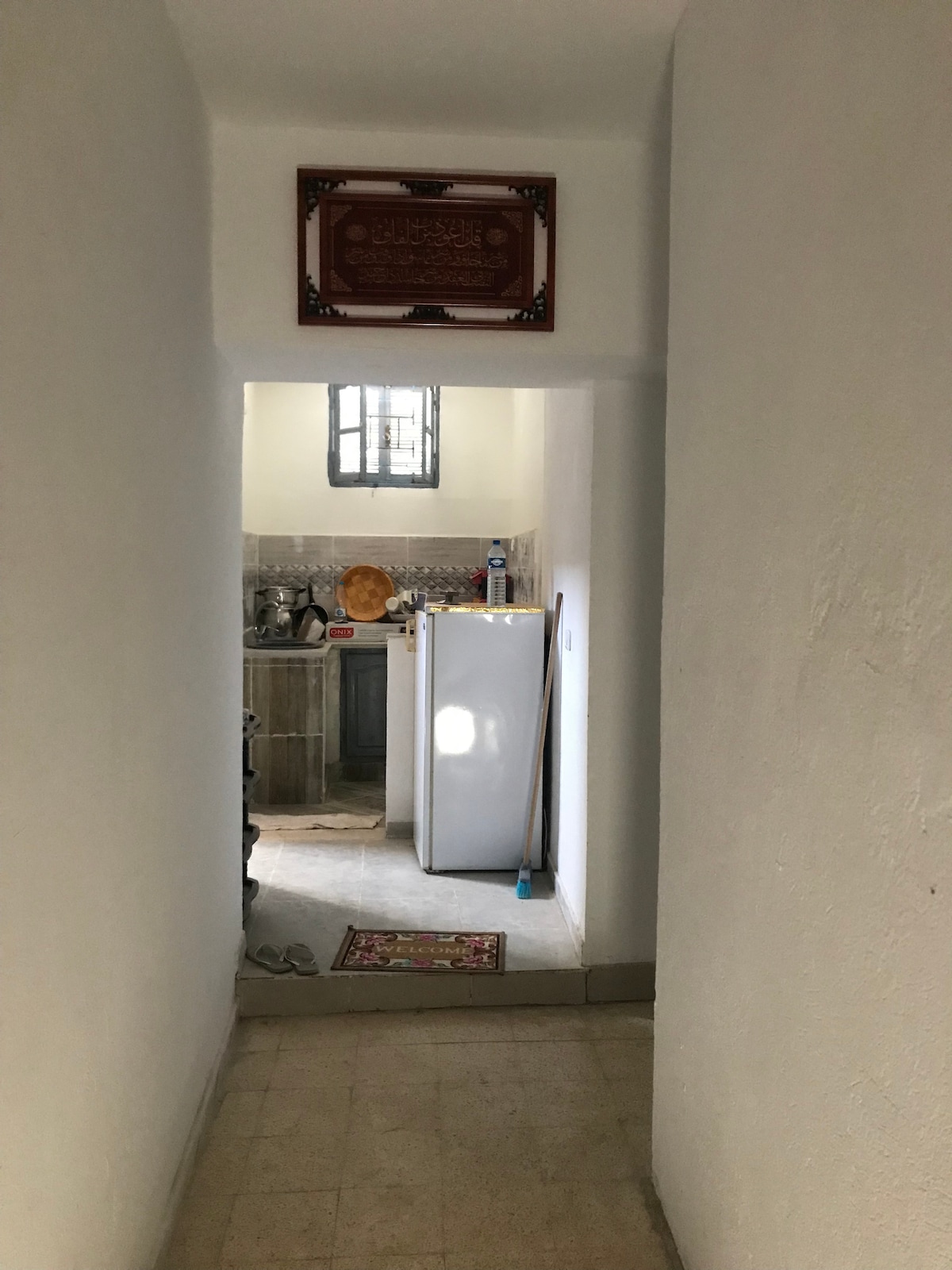 Un lugar mágico ideal 🤩 situado en el centro de Houmet souk Djerba para pasar sus mejores vacaciones🛫 en esta isla paradisíaca 🏝La casa está en 1ª planta con ocho escalones de escaleras. Tiene una pequeña terraza en la entrada, una sala de estar con una pequeña cocina👩🍳, una ducha 🚿y dos dormitorios con cuatro camas🛏. La casa está bien soleada ☀️ y bien ventilada con cuadros tradicionales🖼. Tiene un aparcamiento 🅿️de coches justo al lado y accesible para cualquier tipo de transporte🚊.