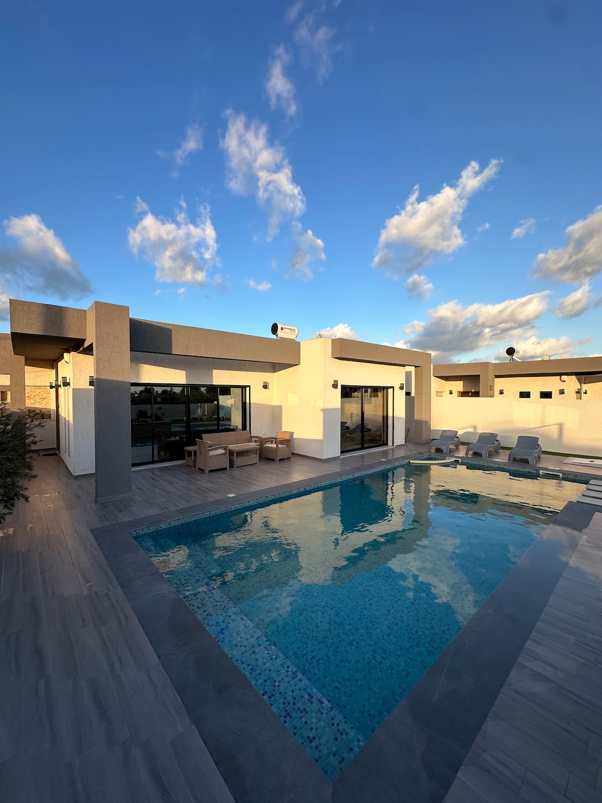 ⛱️. Descubre el lujo absoluto en Djerba alojándote en nuestra prestigiosa villa, idealmente situada a un paso de la playa Ideal para unas vacaciones en familia o con amigos, la villa cuenta con 3 amplias suites, un acogedor salón, una cocina equipada con vistas a una piscina privada sin vis-à-vis y muy segura, así como una terraza con vistas al mar. Podemos organizar la entrega de comidas, desayunos Jacuzzi climatizado por un suplemento