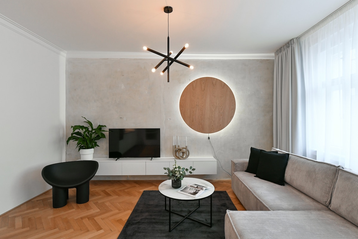 Escapada chic en Karlín: balcón soleado y aparcamiento seguro