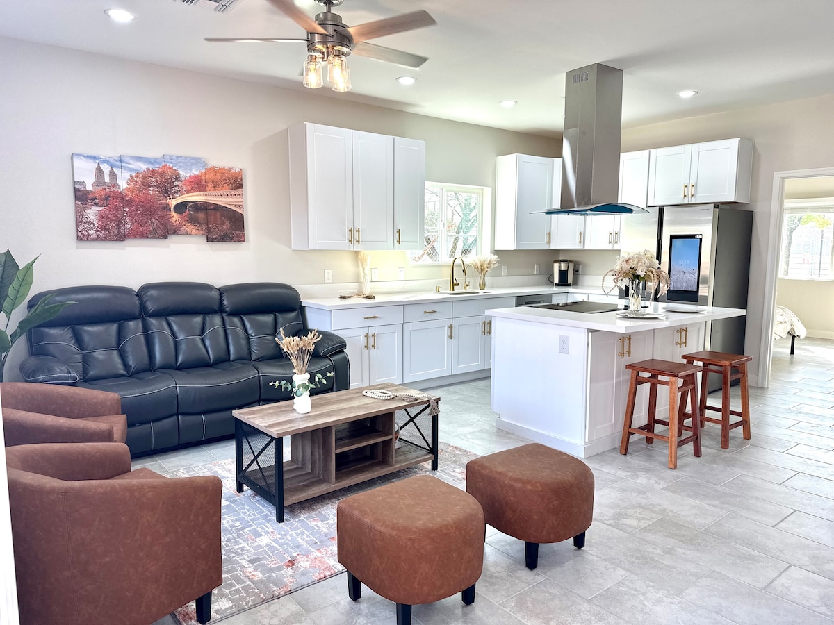 Welcome to the tropical soirée! Escape to a piece of paradise equipped with everything you need for your stay. We offer a fully stocked kitchenette, a private outdoor bistro table and a shared courtyard with a large fire pit. Hop on one of our two beach cruisers and ride down to the movie theaters, brunch and dinner spots only 5 min away! This will truly be your favorite spot to either relax, explore or to stay while traveling for business. We look forward to hosting you!