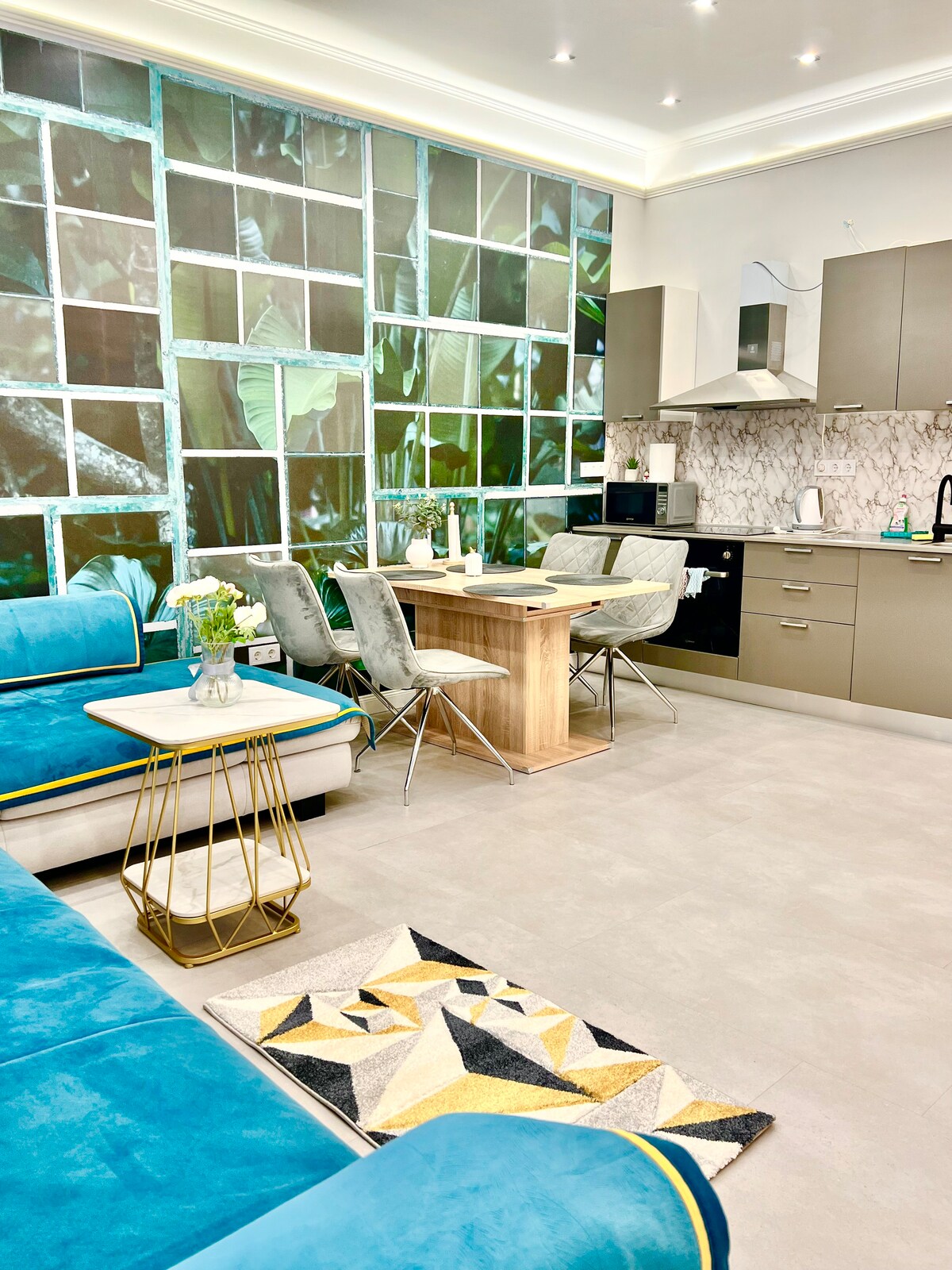 La recientemente renovada residencia de diseño de BUDAPESTING se encuentra en el centro de la ciudad, el histórico y más céntrico distrito 5 entre las plazas Kálvin y Ferenciek. Situado en un hermoso palacio antiguo con techos altos. Cuenta con tres dormitorios, dos camas tamaño «super king» y una cama tamaño «queen», con capacidad para seis huéspedes, dos baños completos, cocina totalmente equipada y un amplio salón/comedor. ¡Lo hemos equipado con aire acondicionado en todas las habitaciones, Internet lo más rápido posible y todas las demás comodidades para que tu estancia sea más que perfecta!