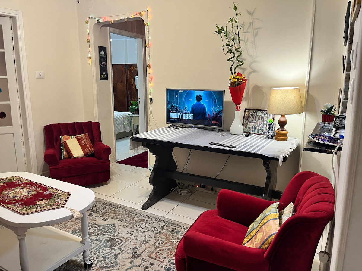 Amplio apartamento Dokki Khan de 2 dormitorios totalmente amueblado ¿Buscas un apartamento lujoso y totalmente amueblado en el corazón de Dokki? Esta unidad de 2 dormitorios bellamente diseñada ofrece todo lo que necesitas para una vida cómoda. Con servicios modernos, espacios con aire acondicionado y un ambiente vibrante y colorido, refleja el animado ambiente de la zona. Su ubicación privilegiada la hace ideal para profesionales, familias o cualquier persona que busque una mezcla de comodidad y estilo de vida auténtico en El Cairo.