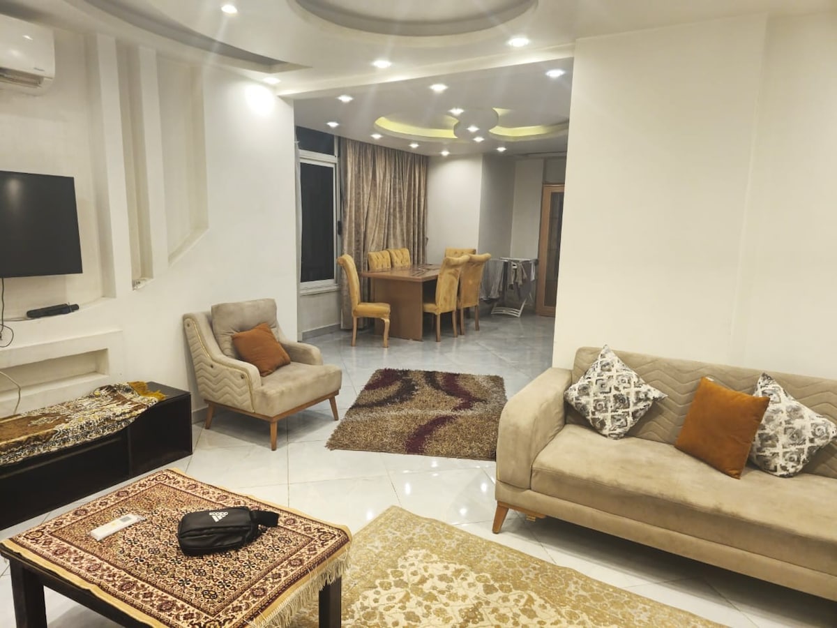 A luxurious apartment of 170 square meters consisting of 3 bedrooms, 2 bathrooms, 2 receptions, a kitchen, the rooms are equipped at the highest level, the kitchen is complete with all electrical equipment, cooking utensils and food, and we offer free sheets, blankets and towels in all bedrooms for our guests, and our rooms are large & its cleanliness, and when you be in our balcony overlooking Sheraton Of Cairo you see the Nile from the balcony.