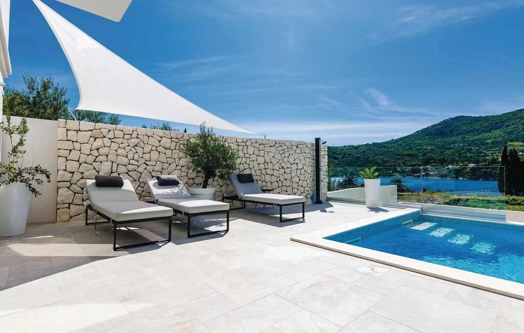 Casa de vacaciones con piscina en Dubrovnik al atardecer