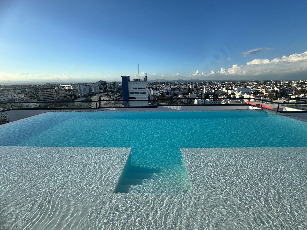 En este Hermoso departamento Podrás sentirte como en casa , disfrutar de la maravillosa vista , también podrás disfrutar de las excepcionales Áreas sociales Que cuenta con una Piscina con vista al gran Santo Domingo , centro comerciales cerca y restaurantes Un espacio único para tu momento ideal. **Atención:** las reservas de una noche, por el momento no tienen acceso al área social.