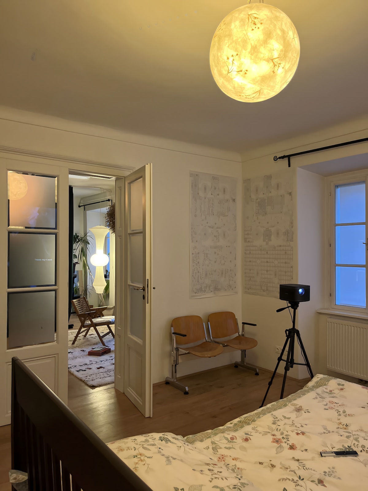 Loft moderno en la mejor ubicación cerca del Westbahnhof y centro comercial con estilo industrial chic. Características: cama doble en el dormitorio (flexible por cortina desde el salón), cama individual en el salón, vestidor, proyector para noches de cine. Todas las ventanas se pueden oscurecer, perfectas para noches de cine y un sueño reparador. Cocina totalmente equipada con fogones, nevera y cafetera. Amplio baño con ducha de suelo a techo y lavadora. Amplia antesala para vestirse.