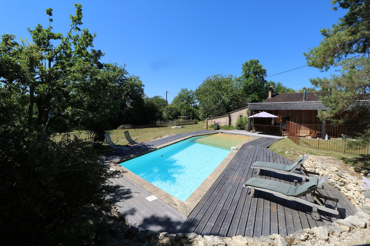 Granero reformado en Sarlat. Piscina y cocina al aire libre