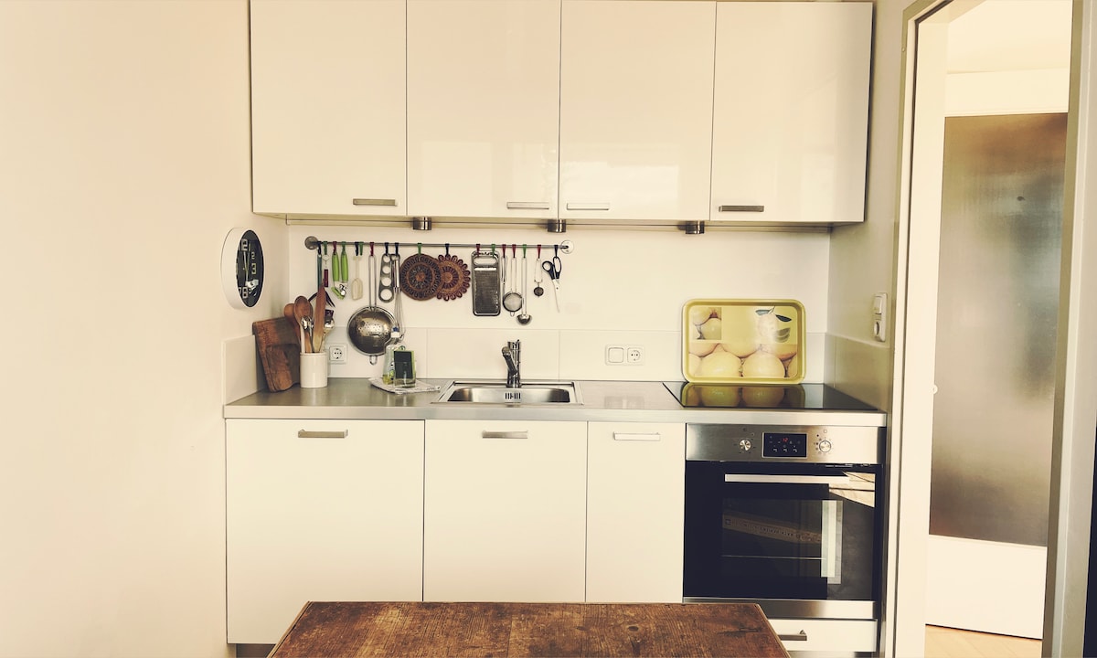 Bienvenido a nuestro encantador apartamento ubicado en un barrio tranquilo, parte de una casa encantadora. Disfruta de un entorno tranquilo y a la vez cómodamente cerca de los servicios locales. El apartamento cuenta con una acogedora sala de estar con sofá cama, una cocina bien equipada y un cómodo dormitorio. Perfecto para una escapada relajante o un retiro tranquilo, te sentirás como en casa en este espacio sereno. Estás a 10 minutos a pie del centro. Hay una parada de autobús cerca del apartamento. El bosque está a 5 minutos a pie y ofrece zona de barbacoa y parque de fitness.