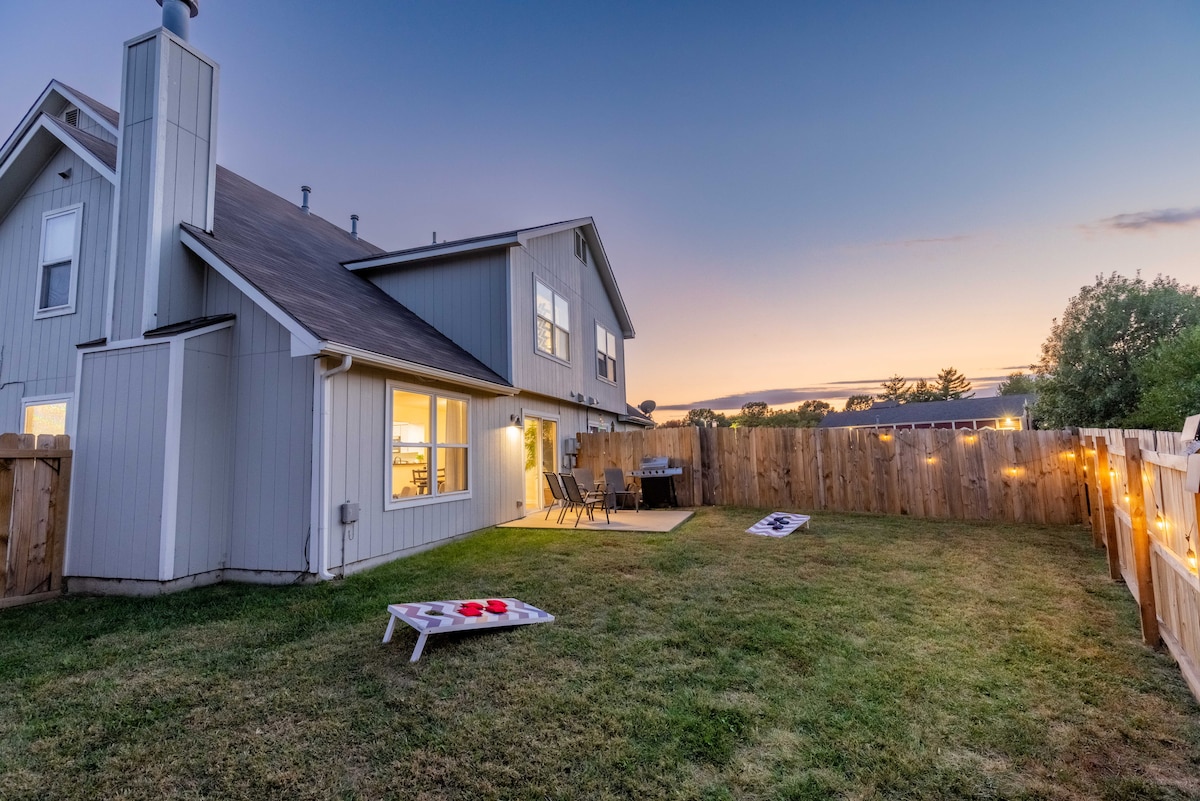 ¡Te damos la bienvenida a Lawrence Layup! Relájate con toda la familia en esta tranquila casa adosada. ¡Descanso cómodo y lleno de divertidos juegos familiares! Diseñado pensando en la comodidad y el disfrute de tu familia, este es el lugar ideal para grupos de 2 a 8 personas. A solo unos minutos de todo KU. En la ruta de autobús a Mass Street. - A 1 minuto de Iowa Street. - A 1 minuto de Chick-Fil-A - A 5 minutos de Walmart. - A 8 minutos de Allen Field House. - A 9 minutos del estadio David Booth Kansas Memorial. Licencia de alquiler n.º STR-23-00006