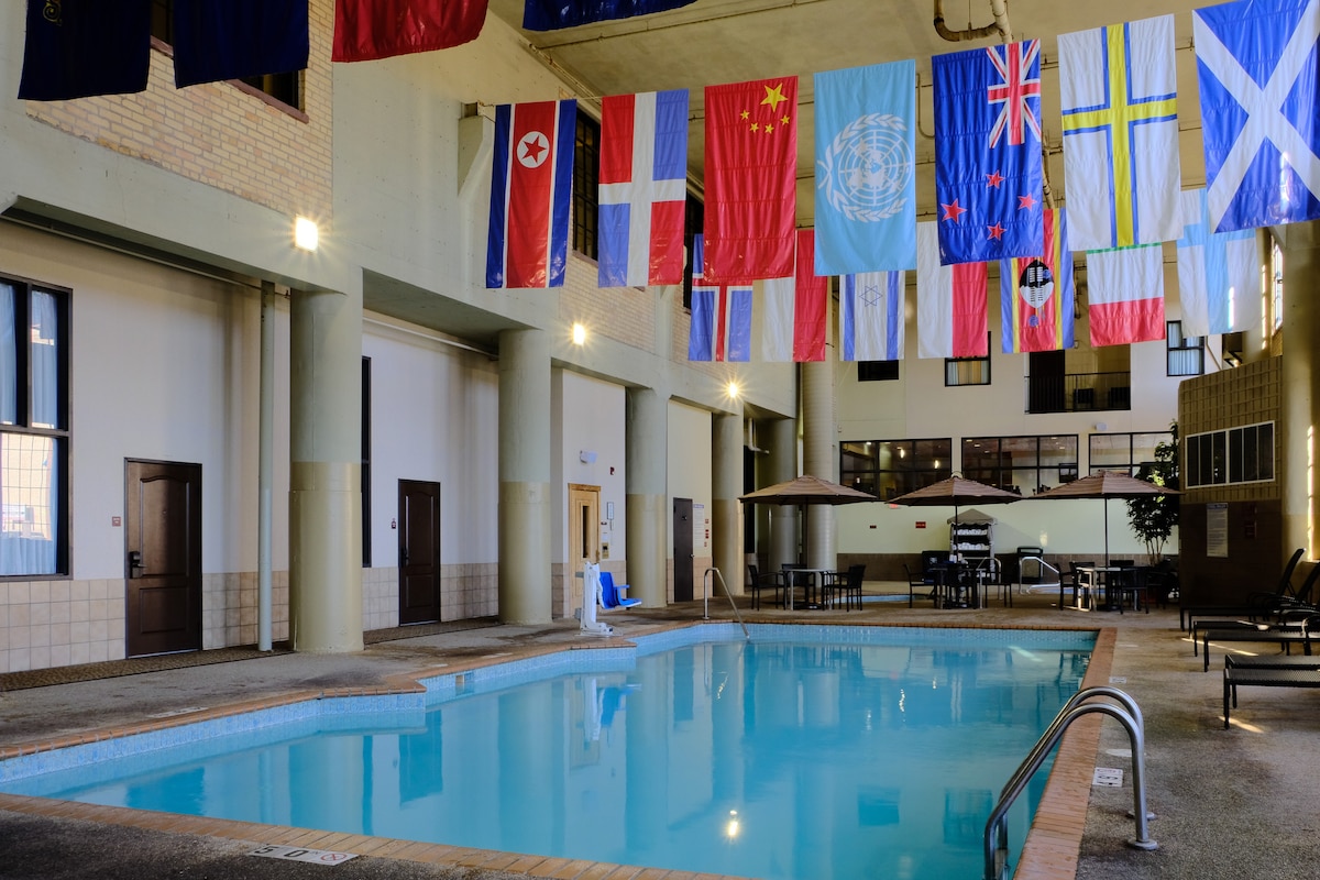 ¡Reúne a tu familia o amigos en el corazón de Canal Park! ¡Disfruta de unas vistas impresionantes de la ciudad y de tu café de la mañana desde tu balcón privado! Brighton Beach Suites 1: ⭐️ 1 cama tamaño king, 2 camas completas, 1 sofá cama tamaño queen. ⭐️ 2 baños completos, uno con bañera/ducha de azulejos y otro con ducha de azulejos. ⭐️ Balcón ⭐️ Cafetería: Keurig. Cocina ⭐️ totalmente equipada. ⭐️ Una plaza de aparcamiento gratuita. ⭐ En el lugar: cervecería, bar, restaurantes, piscina, jacuzzi, sauna, gimnasio. ⭐ En Canal Park. Número de licencia: PL23-088
