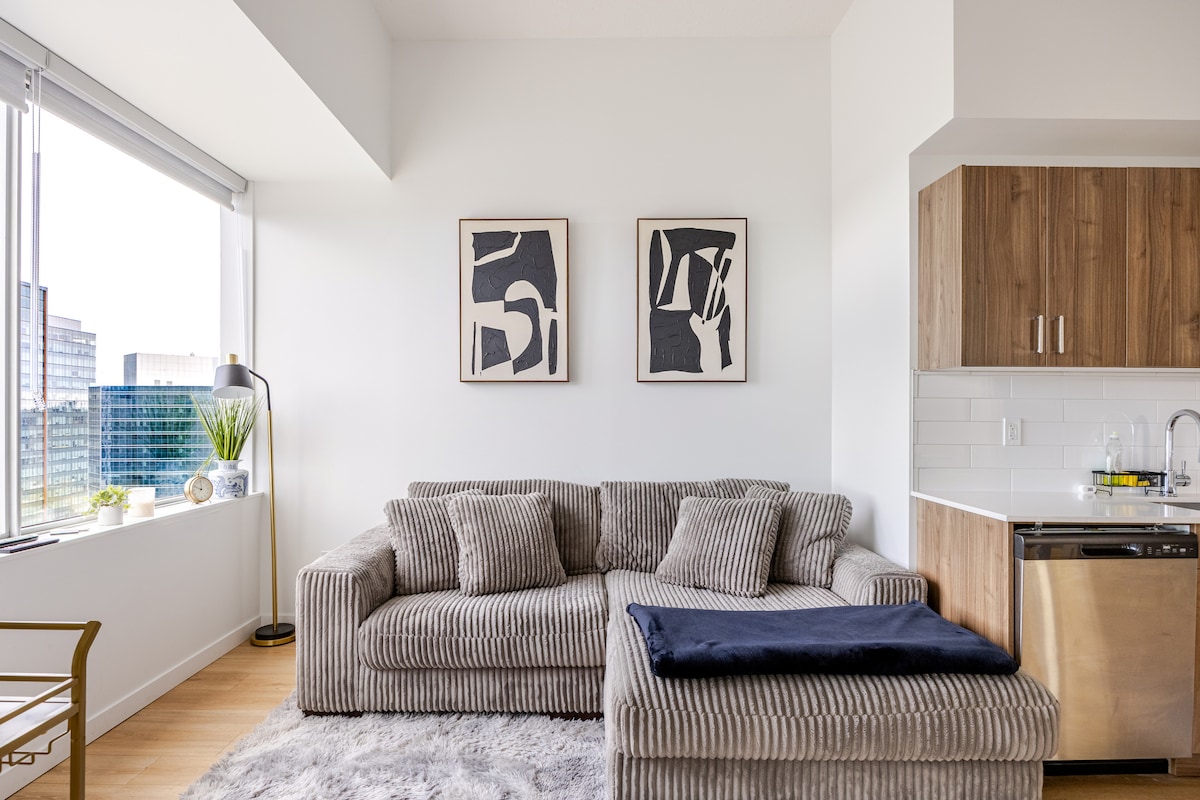 ¡Disfruta de una vida urbana de lujo en el corazón del centro de Edmonton! Este elegante loft tiene capacidad para 3 personas y es perfecto para viajeros de negocios, parejas o grupos pequeños que buscan una estancia de alta gama. Disfruta de servicios de primer nivel, incluidos electrodomésticos Miele de primera calidad, un frigorífico Sub-Zero, todo ello en un espacio elegante y abierto que combina el encanto industrial con la elegancia moderna.