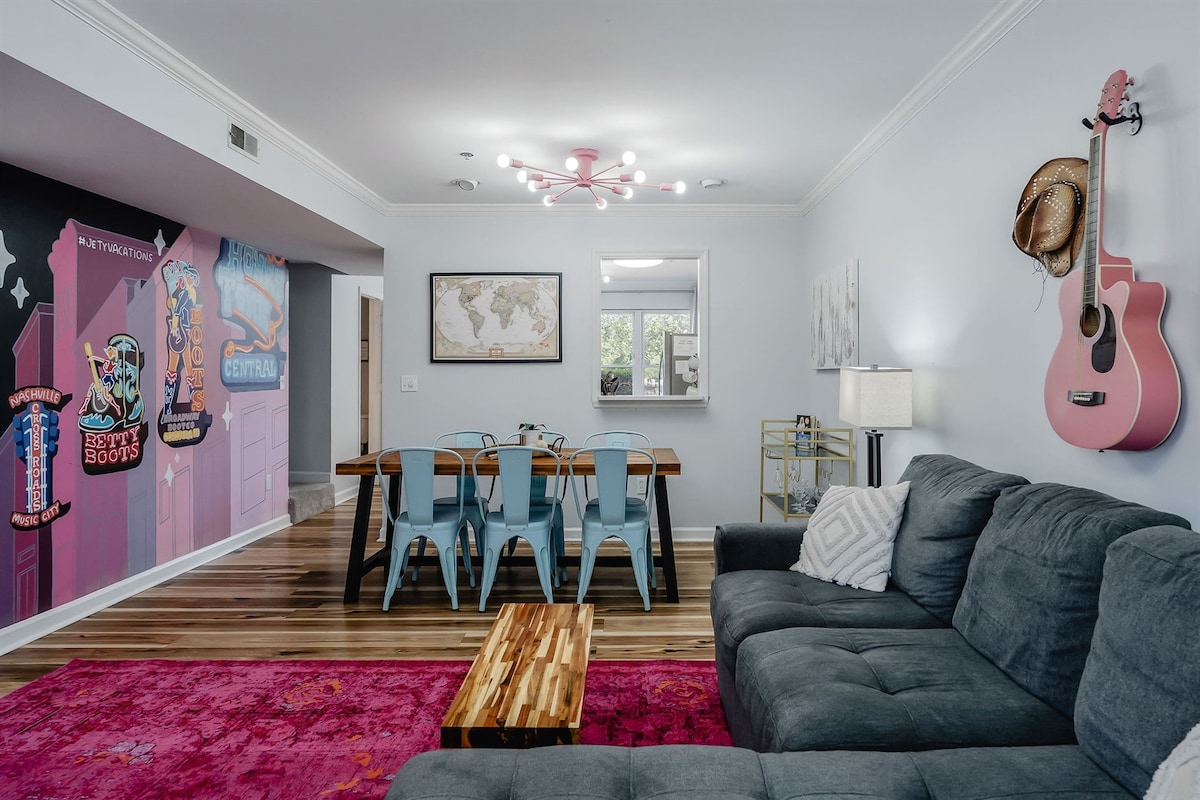 Esta espaciosa, limpia y cómoda casa adosada en East Nashville está convenientemente ubicada a pocos minutos del centro de la ciudad. Con casi 2000 pies cuadrados y baños en suite en ambos dormitorios, este alojamiento es perfecto para dos parejas o un grupo pequeño. Esta casa adosada también cuenta con una gran área de concepto abierto con cocina, sala de estar y comedor. Con una cocina bien equipada, lavadora y secadora de tamaño completo y garaje adjunto para dos coches, este alojamiento también es ideal para estancias de una semana o meses.