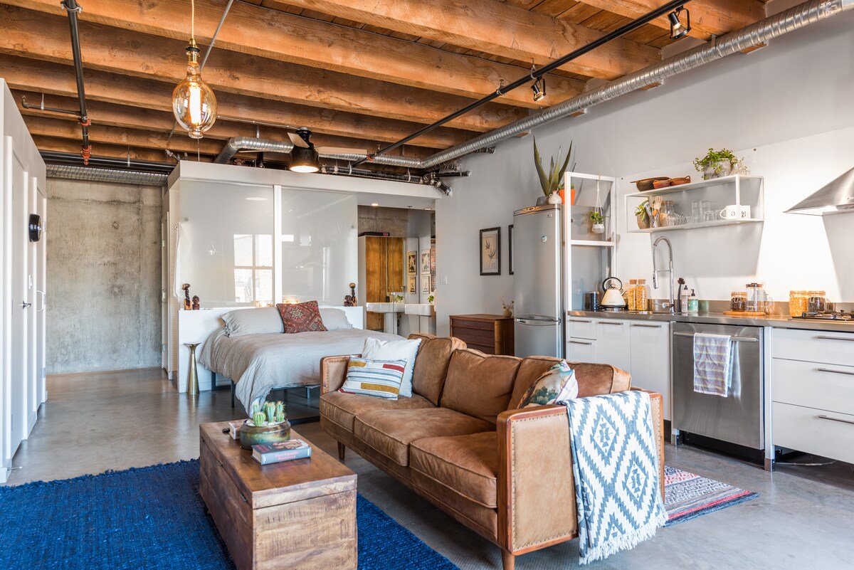 Hermoso loft de Gastown, cerca de todo! Descubre un lugar encantador para recargar energías en este apartamento único de concepto abierto. Escucha algo de música en el tocadiscos y disfruta de la soledad de un espacio rústico con techos de vigas de madera, ladrillo renovado y un ambiente relajante. ¡Experimenta Vancouver como un lugareño cerca de todo lo mejor que la ciudad tiene que ofrecer! *TEN EN CUENTA QUE A PARTIR DEL 1 DE JULIO NO TENDREMOS APARCAMIENTO DISPONIBLE, PERO COMPARTIREMOS OPCIONES CERCANAS*
