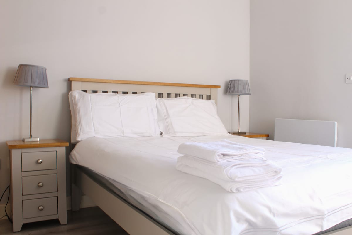 Disfruta de una estancia cómoda en este acogedor apartamento de 1 dormitorio con todas las comodidades modernas. El dormitorio cuenta con una lujosa cama doble (4 pies 6 pulgadas) para una noche de sueño reparador. La sala de estar independiente incluye un televisor inteligente de 55 pulgadas y un acogedor sofá con vistas al Liffey. La cocina totalmente equipada cuenta con cafetera Nespresso, horno, vitrocerámica de 4 anillos, nevera y microondas. Situado a 1 minuto a pie de Temple Bar y del castillo de Dublín. Guinness Storehouse a 1,5 km a pie. Libros de Kells: 700 m a pie, Christchurch: 400 m a pie