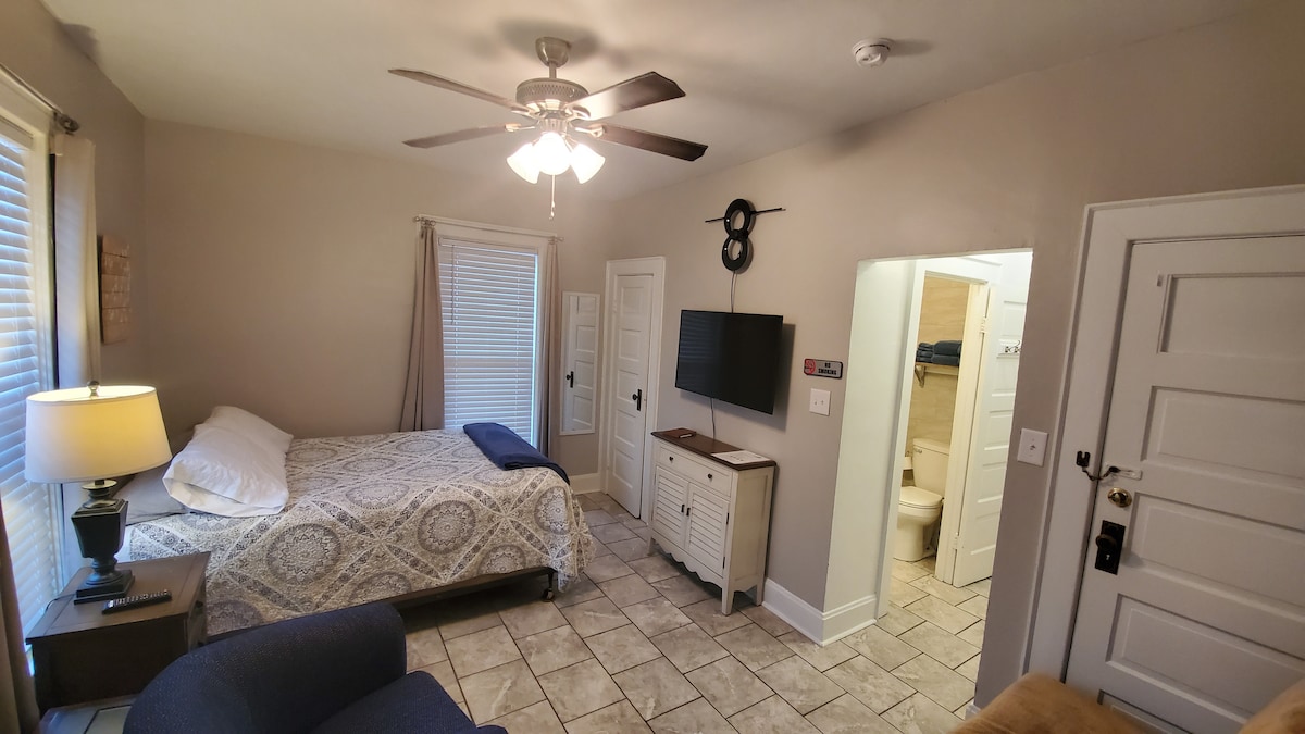 ¡Tengo que advertirte que definitivamente no es un lugar de encuentro o una casa de fiesta! Normalmente me levanto con el gallo en este entorno rural de 5 acres con un pequeño estanque de pesca. 420 amistoso. Las horas de silencio son de 11 a 8, generalmente hay algo de música, los músicos son bienvenidos. Si reservas un domingo, organizo un micrófono abierto en mi granero todos los domingos... bastante relajado. Al llegar, gira en la entrada y luego a la derecha en el patio. El apartamento está arriba, la puerta está abierta y las llaves dentro. ✌️