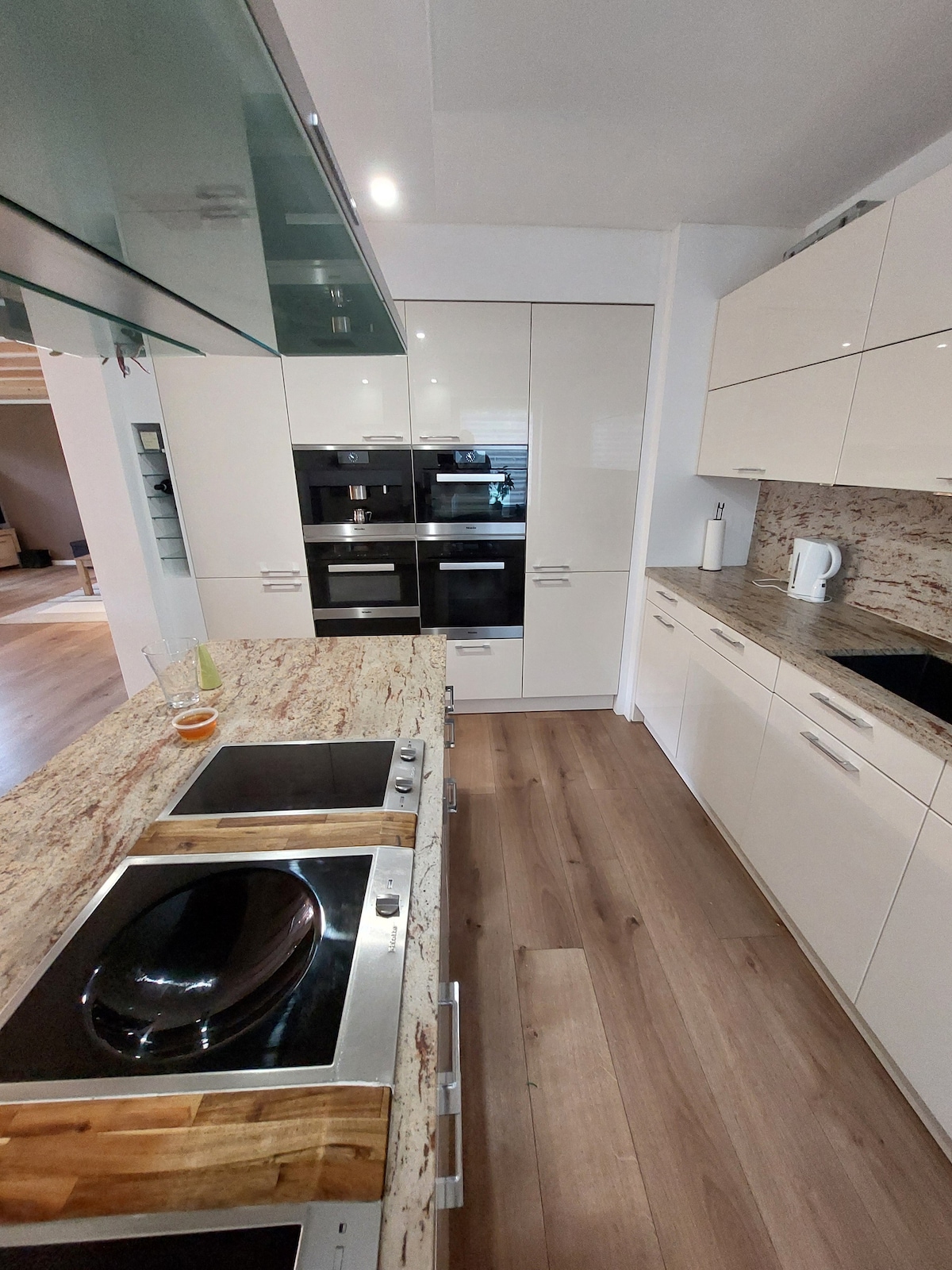 Olvídate de tus preocupaciones en este alojamiento espacioso y tranquilo. En la casa de 152 metros cuadrados, completamente modernizada en 2015 y constantemente embellecida, hay espacio suficiente para hasta 8 personas más 2 bebés. La casa está equipada con calefacción por suelo radiante, cocina de alta calidad, lavadero, lavadora, secadora, 2 baños, 1 ducha y 1 ducha y bañera. 3 dormitorios, cada uno con TV y WiFi. Gran salón comedor con cocina abierta y sala de estar con chimenea. Un hermoso jardín, plantas de privacidad densas, terraza cubierta.