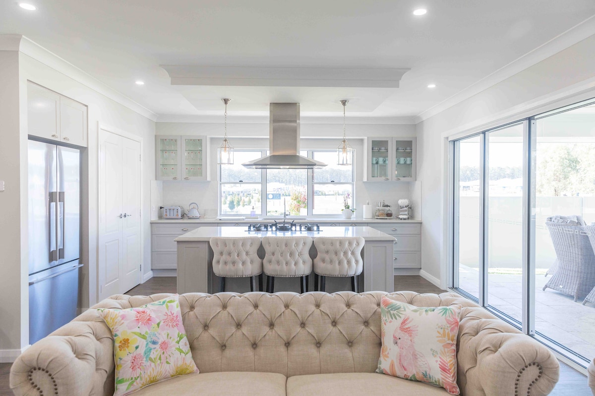 Casa de estilo colonial recientemente renovada y catalogada como patrimonio directamente en el campo de golf Branxton con preciosas vistas sobre el 8 .º verde. La casa cuenta con tablas de piso pulidas, sofás de cuero, una gran terraza con vistas al campo de golf, aire acondicionado de ducto, televisión de pantalla grande y chimenea de gas. A 11 minutos de bodegas, restaurantes y campos de golf de Hunter Valley. Cerca del centro de Branxton, a una manzana de pub, tiendas y supermercado. Punto de recogida conveniente para los eventos de Hunter Valley.
