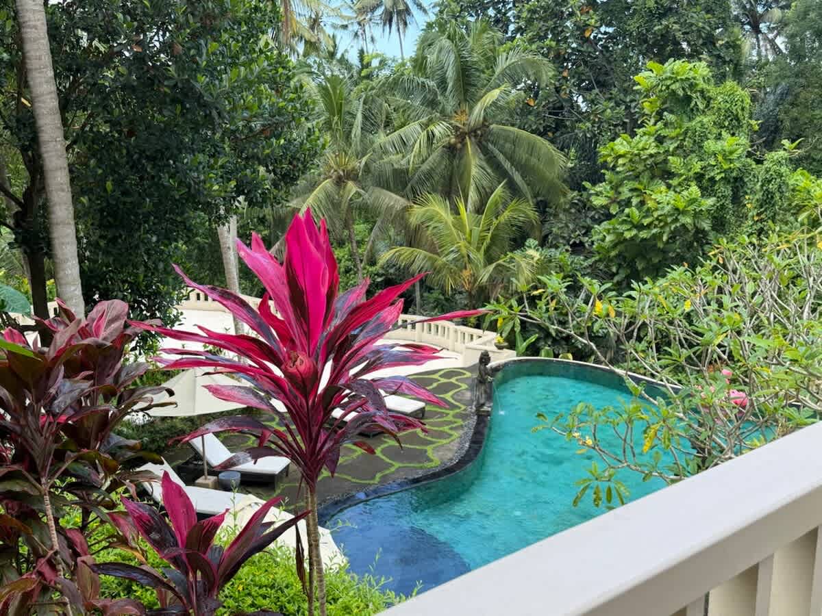 Dormitorio único con vistas a la piscina en las aldeas de Sanur