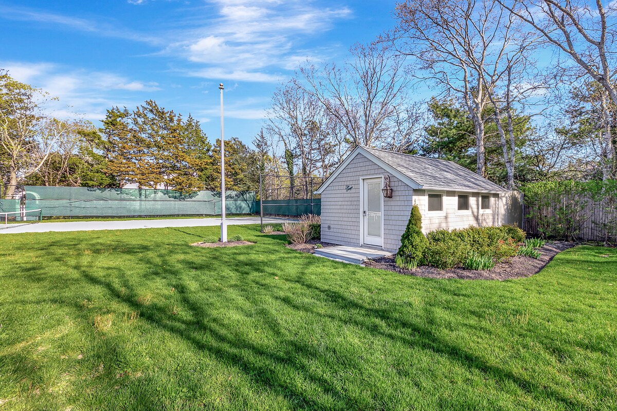 Escápate de la ciudad y disfruta de una escapada de tenis y mar en nuestra encantadora cabaña. La pista de tenis privada de har-tru (arcilla verde) es perfecta para los entusiastas del tenis, mientras que el amplio patio y el patio ajardinado ofrecen relajación después de un día fuera. Accede a la playa y a la ciudad en cuestión de minutos y conecta tu coche eléctrico antes de darte una ducha al aire libre. Disfruta de una combinación perfecta de confort, lujo y comodidad con café, TV, wifi y toallas. **¡Lamentablemente, el tenis está cerrado por la temporada!