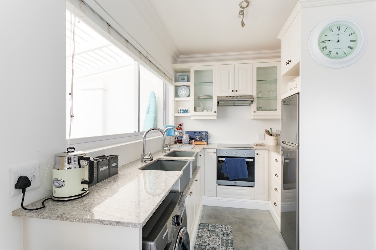 Piso renovado de 2 dormitorios a pocos pasos de la playa principal de Jeffrey's Bay con puerta peatonal justo en Beach Rd para facilitar el acceso a la playa. Está cerca de la mayoría de los restaurantes y bares de Jeffrey 's Bay Central, así como de las tiendas de la fábrica. Te alojas en un apartamento privado con capacidad para un máximo de 4 en 2 dormitorios. El dormitorio principal con cama tamaño queen nueva y segundo dormitorio con 2 camas individuales ideales para niños. Hay wifi gratuito ilimitado disponible, así como televisión inteligente. Trae tu dstv y/o los inicios de sesión de Netflix.