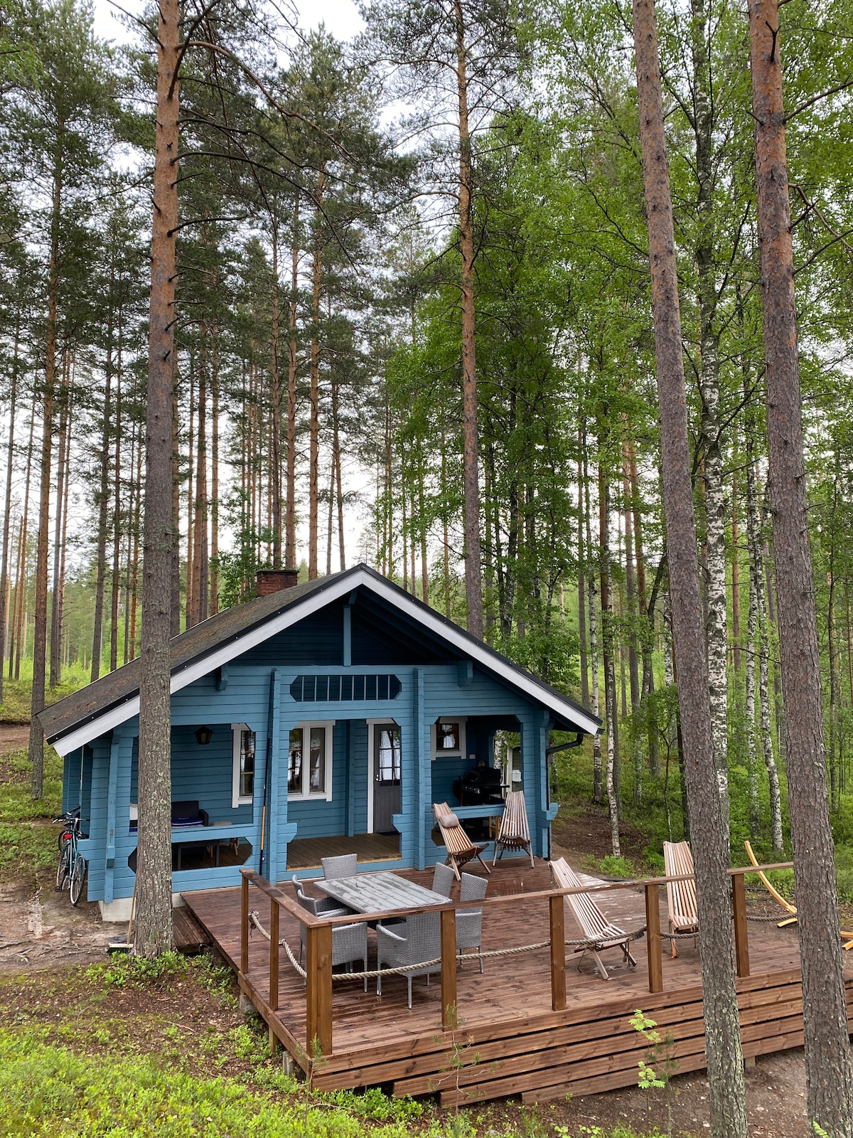 Una acogedora cabaña entre pinos y el lago a solo 2 pasos de Saimaa. Es bastante pequeña por dentro (30 metros cuadrados) con una gran terraza abierta y un césped verde delante. Hay una cama loft para 2 personas con vistas, una pequeña cocina, chimenea y sauna de leña dentro de la cabaña. Es genial empezar el día nadando temprano y hacer yoga/desayunar en la terraza escuchando el canto de los pájaros y terminar el día con una copa de vino tomando fotos de una impresionante puesta de sol.