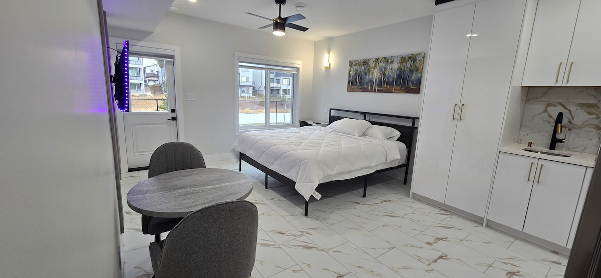 Welcome to the Ottewell Suite! Our newly built (March 2022) garden suite is located above our double garage and has it's own dedicated outdoor parking and private entrance. ⇾ Self check-in via smart lock. ⇾ Bright and open with vaulted ceilings ⇾ Full in-suite laundry ⇾ Large closet and queen size bed ⇾ Private balcony with bistro seating ⇾ Smart TV with fast wifi included ⇾ Fully stocked kitchen with eating bar ⇾ Air Conditioning Business Licence #419831993-002