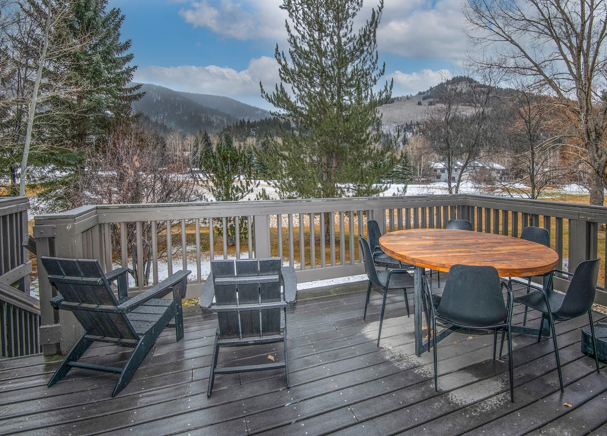 Descubre la joya de East Vail: una cabaña privada de 2 dormitorios situada junto a un arroyo sereno. Relájate en una cama tamaño king, crea una cocina totalmente equipada y relájate con un televisor de 55pulgadas. Barbacoa en la amplia terraza. Sube al autobús gratuito de Vail para acceder al pueblo y a las montañas. Encuentra lavadora y secadora para mayor comodidad. Disfruta de las legendarias rutas de esquí, senderismo y ciclismo. Disfruta de impresionantes vistas de álamo, Gore Creek y montañas desde todas las ventanas. Los propietarios han equipado este retiro pensando en tu equipo.
