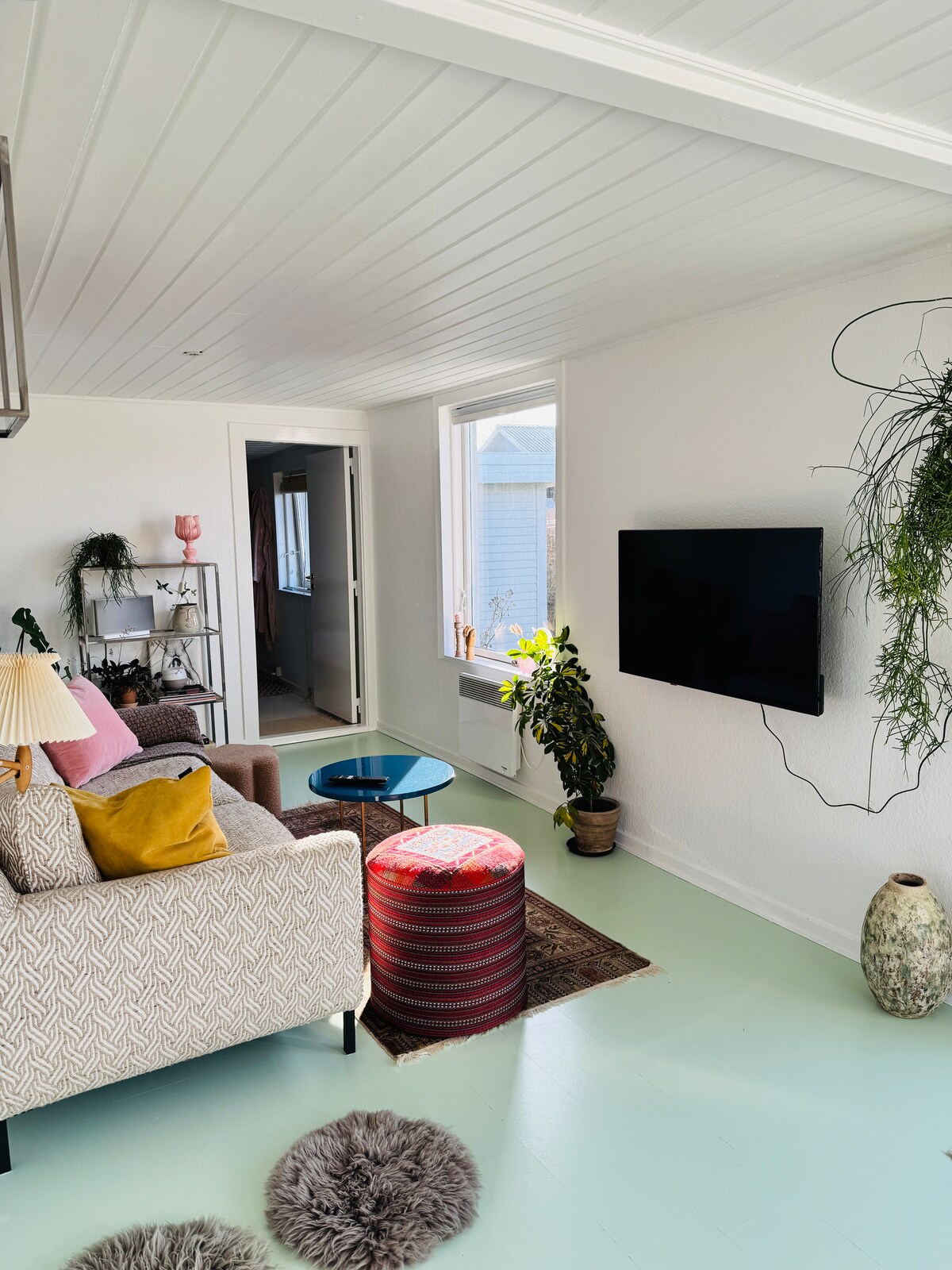 Alojamiento de aprox. 22 m2 con altillo, baño privado con ducha, cocina privada con nevera y placas de inducción. El anexo está situado en ángulo con la cochera/cobertizo y se encuentra en el jardín. Hay 4 camas, dos en el altillo y dos en el sofá cama. Edredones/almohadas/ropa de cama/toallas/paños de cocina son de uso gratuito. Es posible pedir prestada la lavadora/ secadora, así como la casa de cristal, que es de uso gratuito, pero junto con la pareja anfitriona. La casa se encuentra a unos 2 km del fiordo y el bosque y a 8 km de Juelsminde.