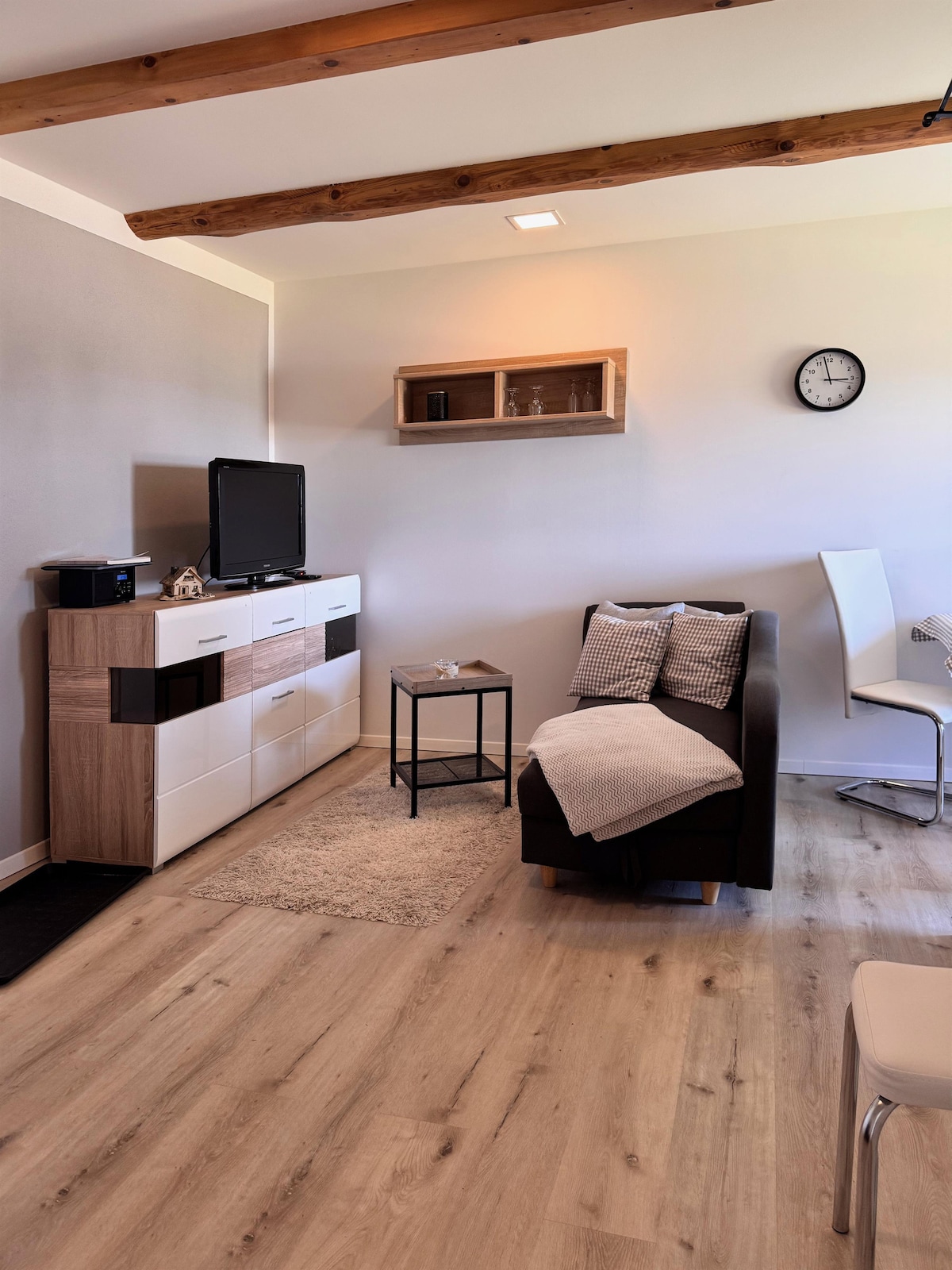 Precioso apartamento de vacaciones sin barreras, todo disponible WLAN, radio por Internet, TV modernamente equipado. Lavavajillas, congelador, microondas, bien situado, en el centro, tranquilo. Segunda planta sin problema, salvaescaleras o elevador de transporte para el equipaje. Espacio para un máximo de 3 personas, dormitorio y sofá con cubierta en el salón de 1,40 de ancho. Aparcamiento gratuito en la puerta