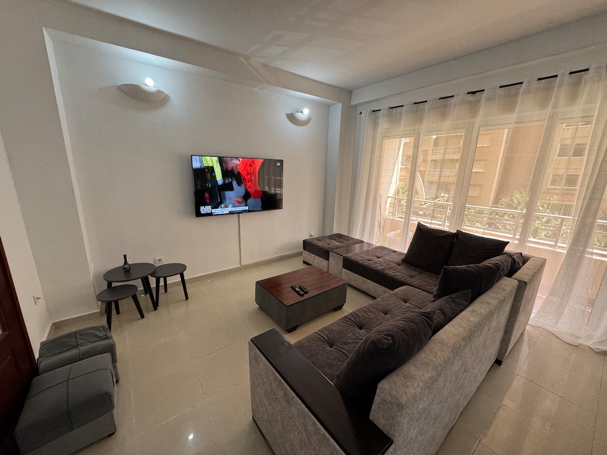 Un apartamento amueblado moderno, en una zona tranquila, pero muy cerca de la concurrida calle de Sidi Yahia. - Suelo de parqué/Calefacción central/Smart TV/Aire acondicionado/Wifi gratuito/Vestidor/Balcón para secar Ropa y lavadora/Plancha/Microondas/Hervidor eléctrico/Utensilios de cocina/Toallas/Productos de limpieza - Agente disponible las 24 horas del día, los 7 días de la semana para tu ayuda durante tu estancia en Argelia