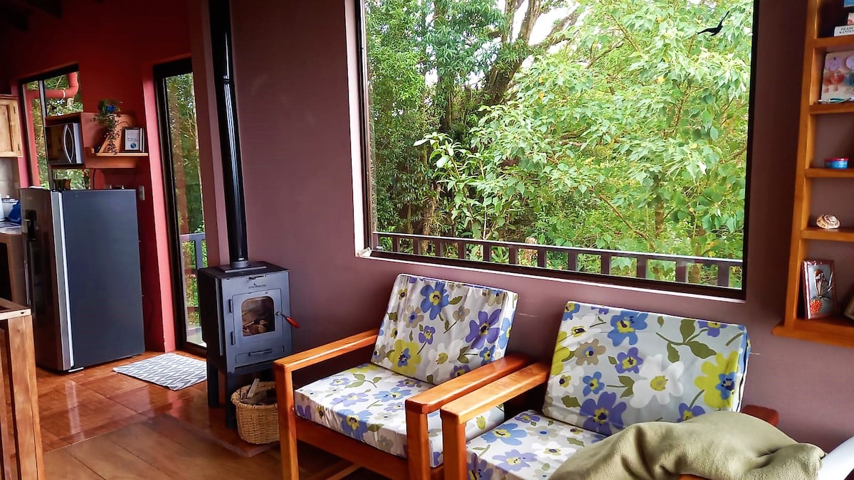 Nuestra casita es el lugar perfecto para quienes buscan un refugio tranquilo y acogedor en medio de la naturaleza. Con un diseño simple pero cómodo, está pensada para brindarte lo necesario para que te sientas como en casa. Se encuentra a solo 7 (3km) minutos en auto del centro de Monteverde, lo que te permite disfrutar de la cercanía a actividades locales, mientras te sumerges en la calma y belleza del paisaje que la rodea.