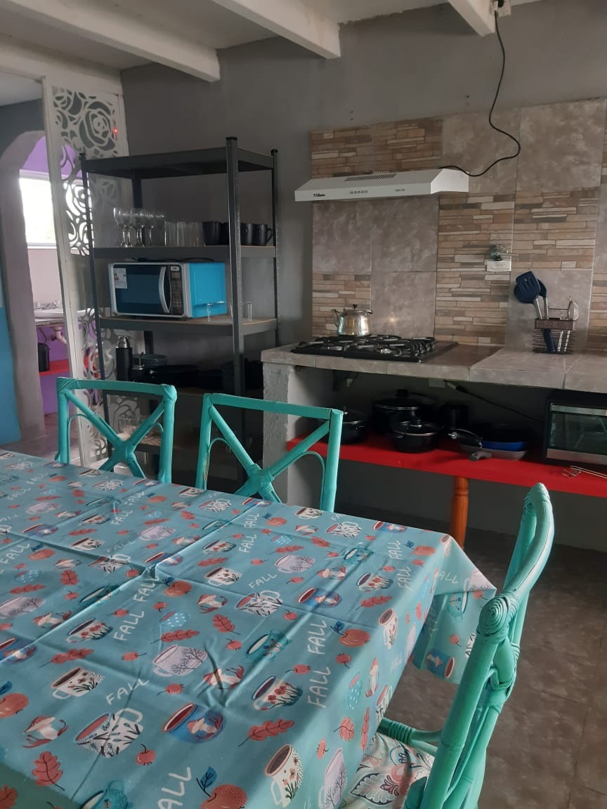 El departamento ubicado a pasos de la Av. principal y de las sendas de este encantador pueblo; cuenta dos ambientes; una luminosa sala de estar y comedor integrados a una cocina completamente equipada con cocina vitroceramica, microondas, heladera, tostadora, pava eléctrica, utensilios y hermosa vajilla. Dispone de una elegante barra central de madera, sillones y una recepción. Y ofrece una habitación independiente con opción de una cama doble o dos camas individuales con smart TV! Inolvidable!